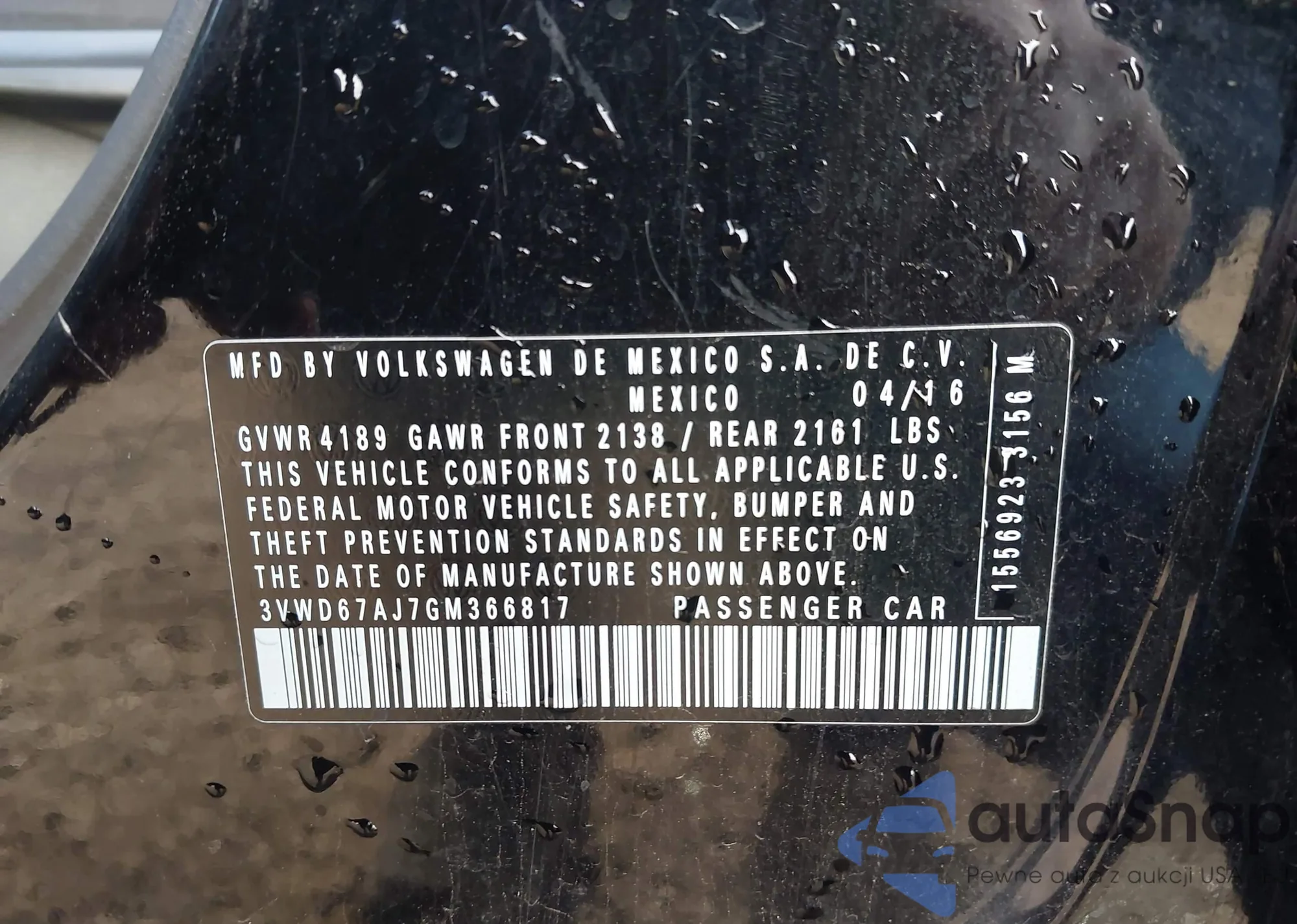 • VIN 3VWD67AJ7GM366817