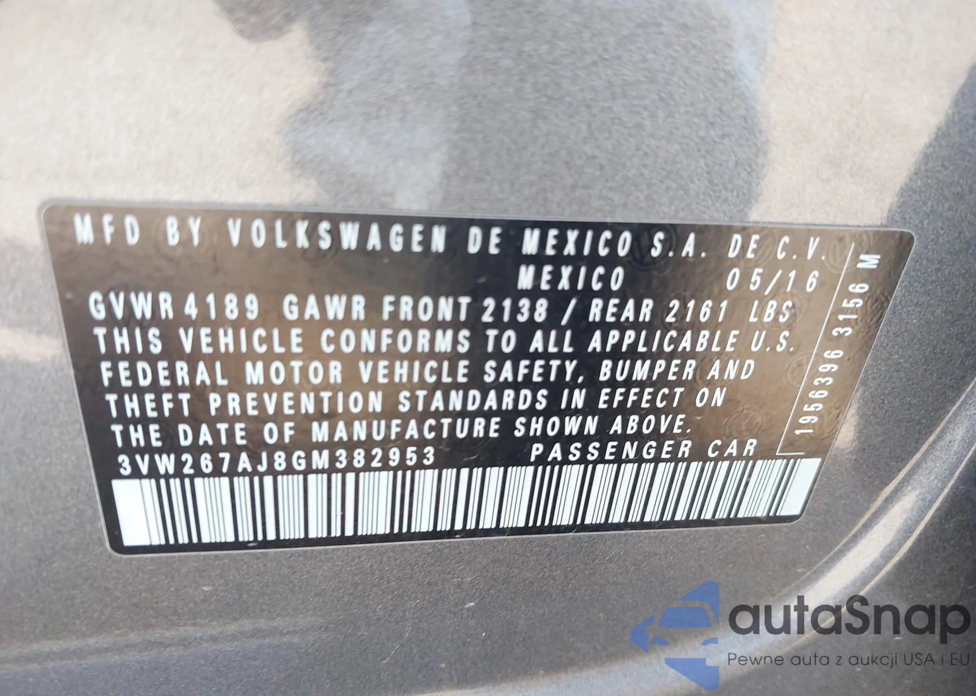 • VIN 3VW267AJ8GM382953