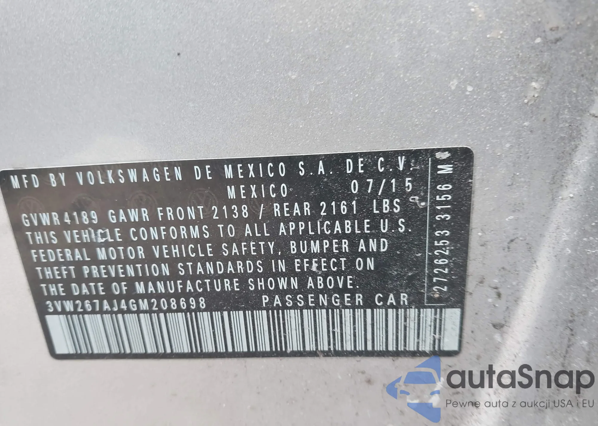 • VIN 3VW267AJ4GM208698