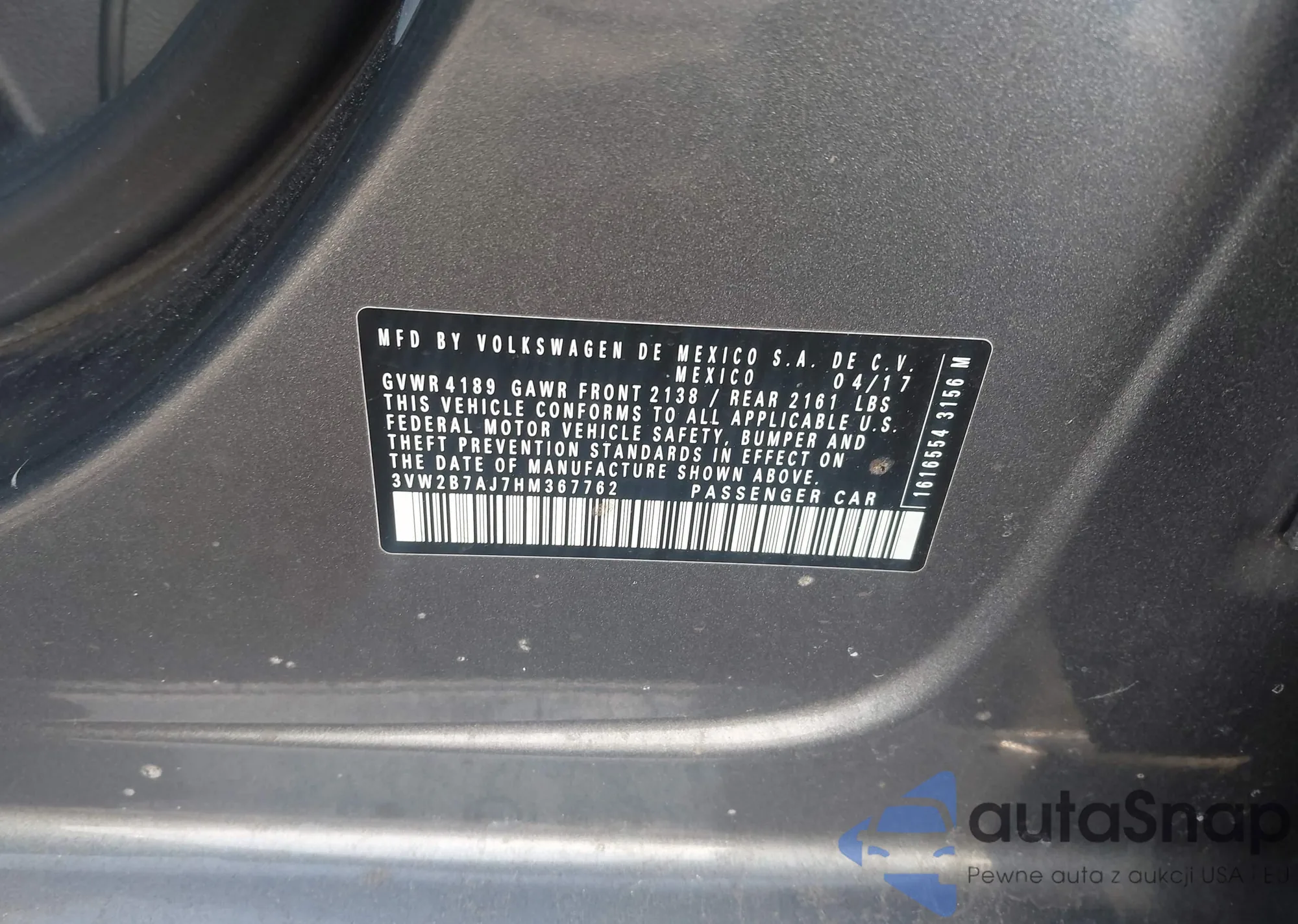 • VIN 3VW2B7AJ7HM367762