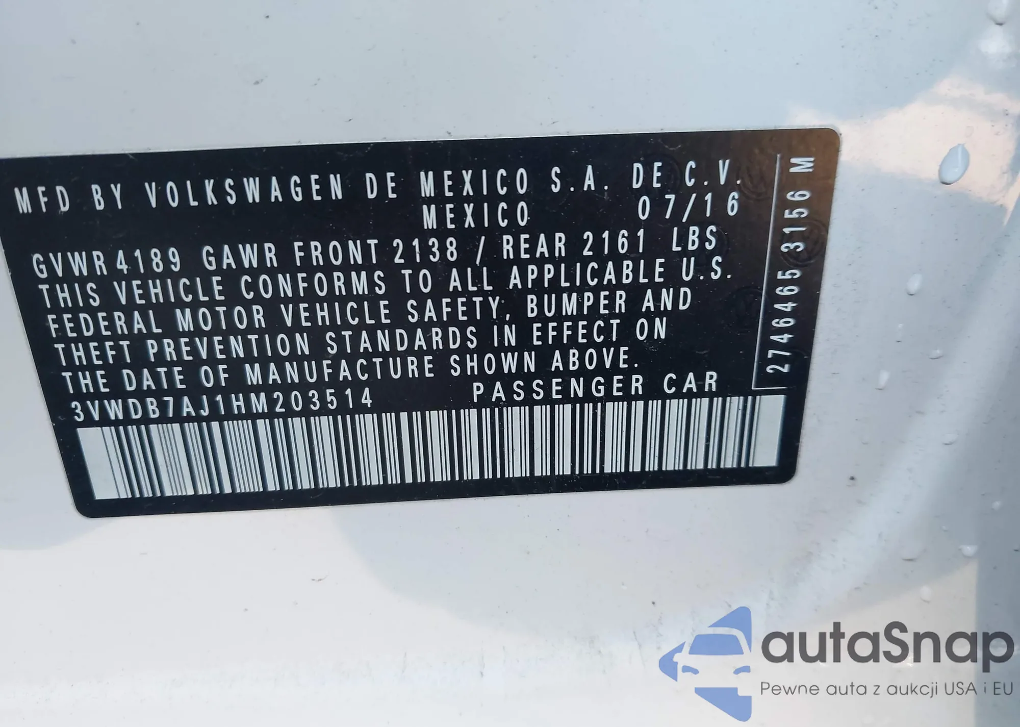 • VIN 3VW2B7AJ7HM364327