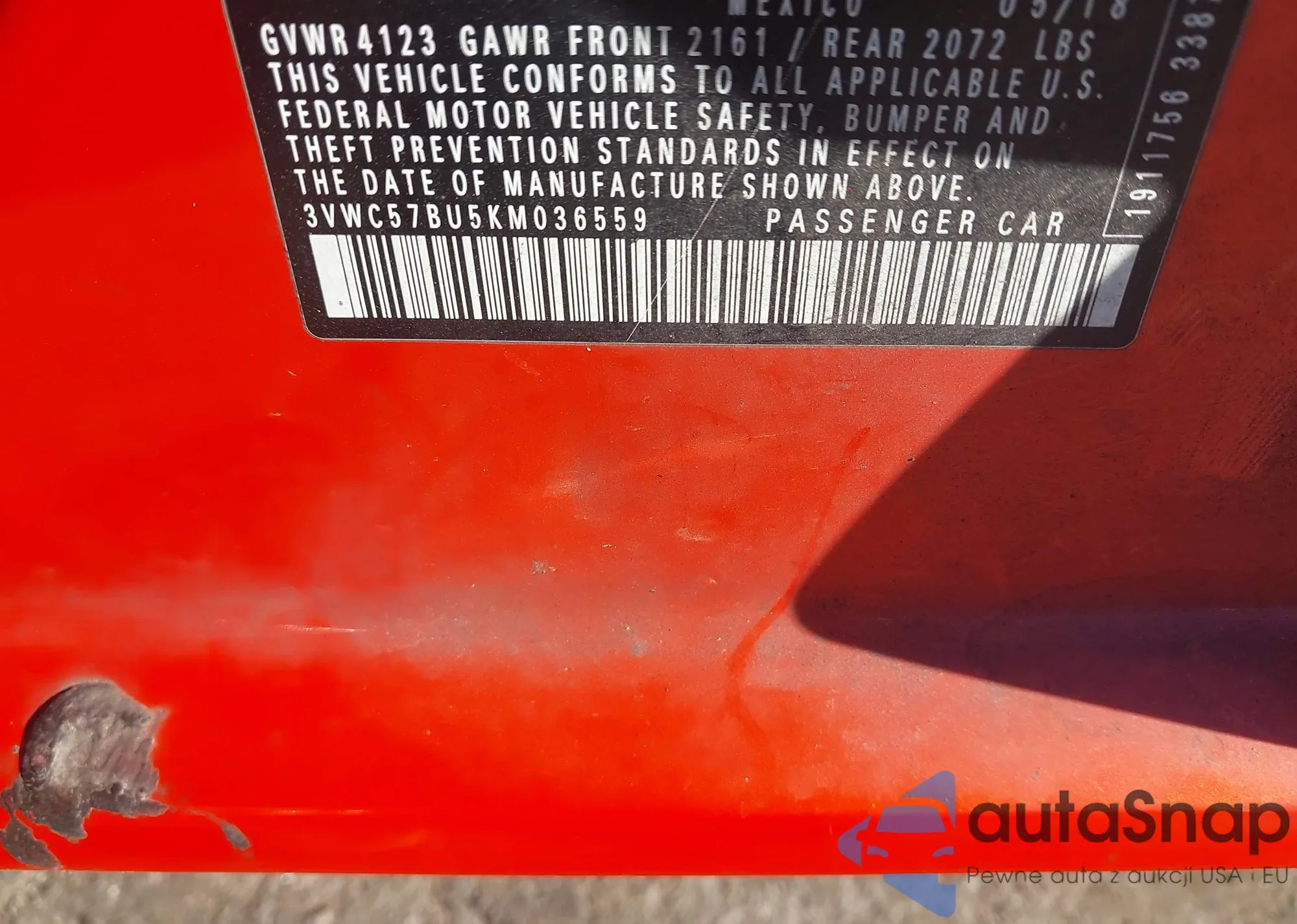 • VIN 3VWC57BU5KM036559