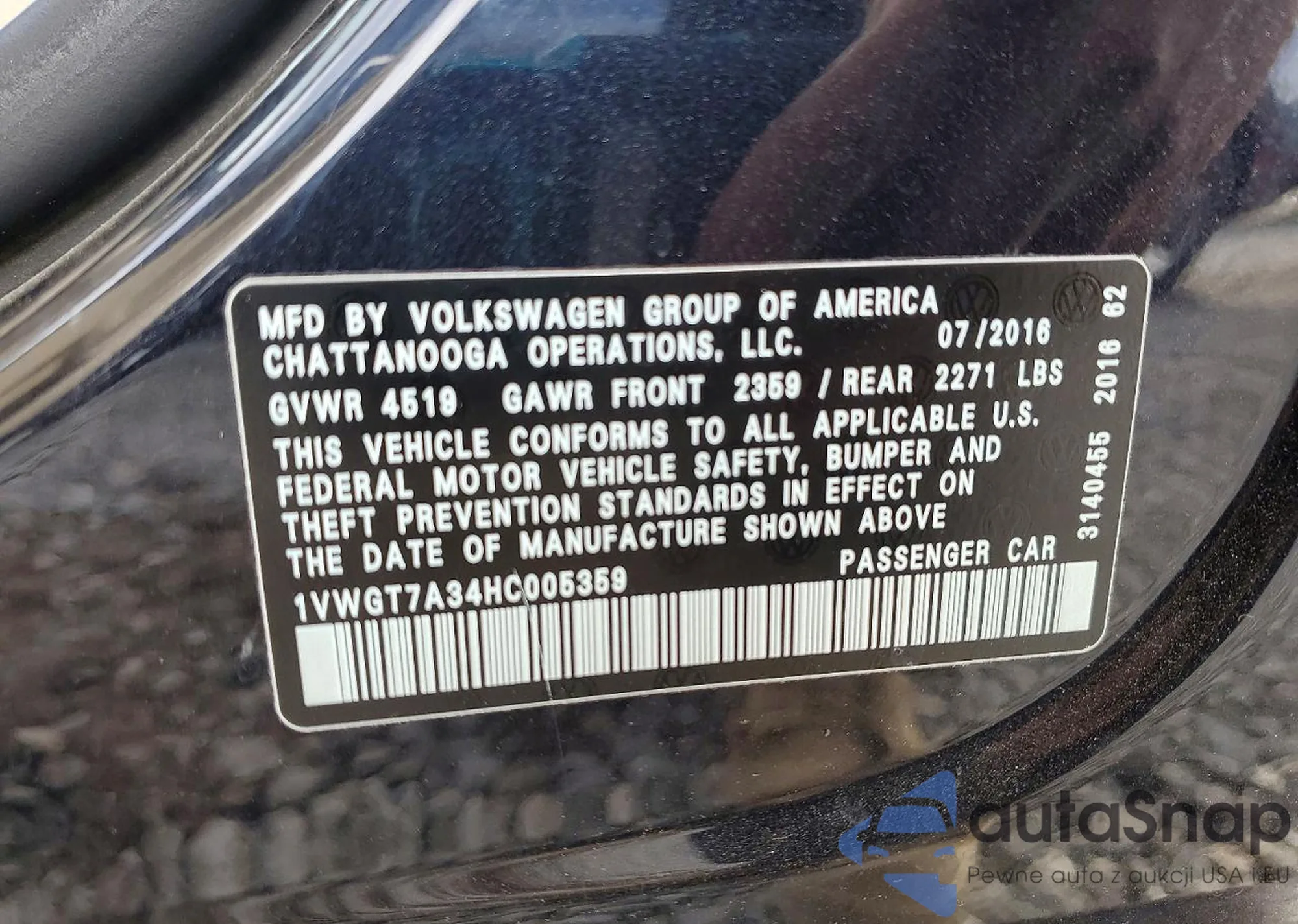 LOT: 44420476 VIN: 1VWBT7A33HC048844