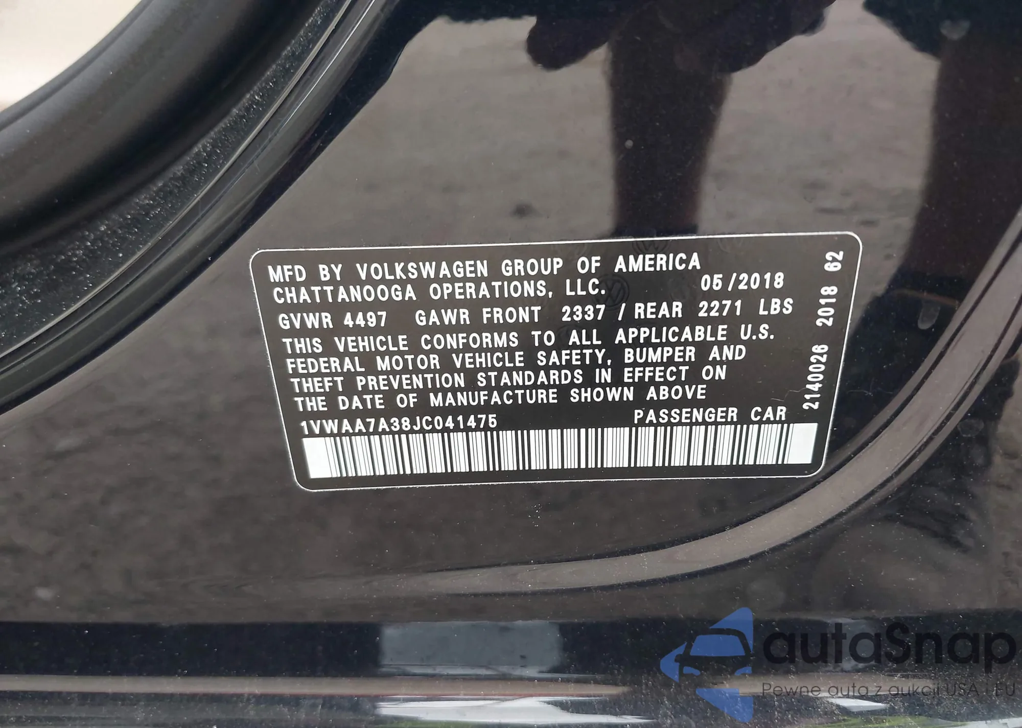 LOT: 44600750 VIN: 1VWAA7A38JC041475