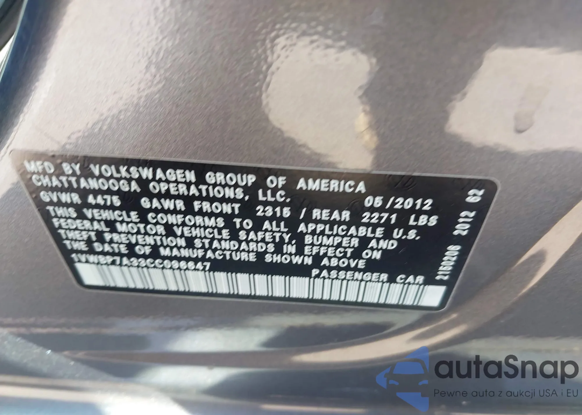 LOT: 44577038 VIN: 1VWBP7A33CC096647