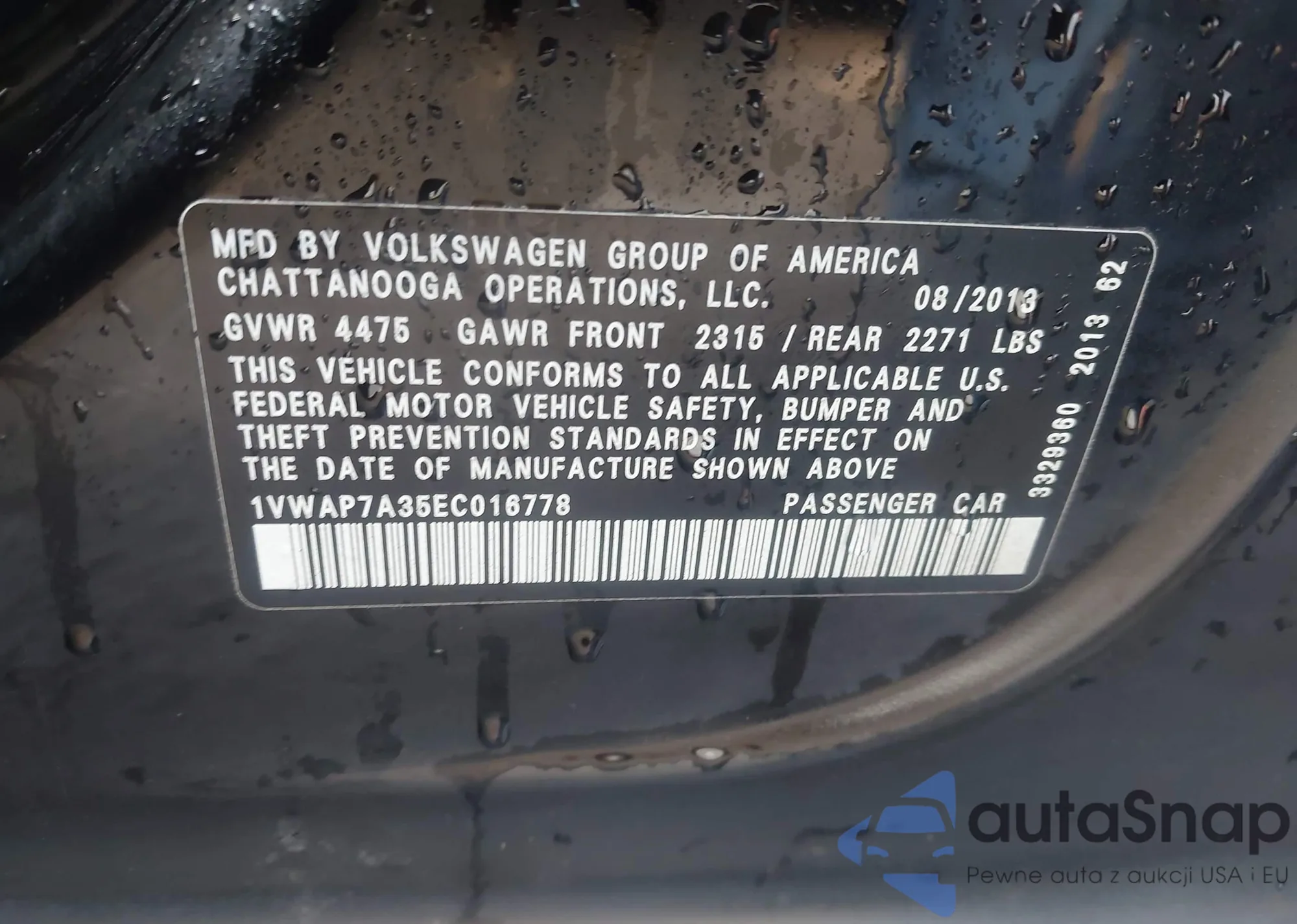 • VIN 1VWAP7A35EC016778