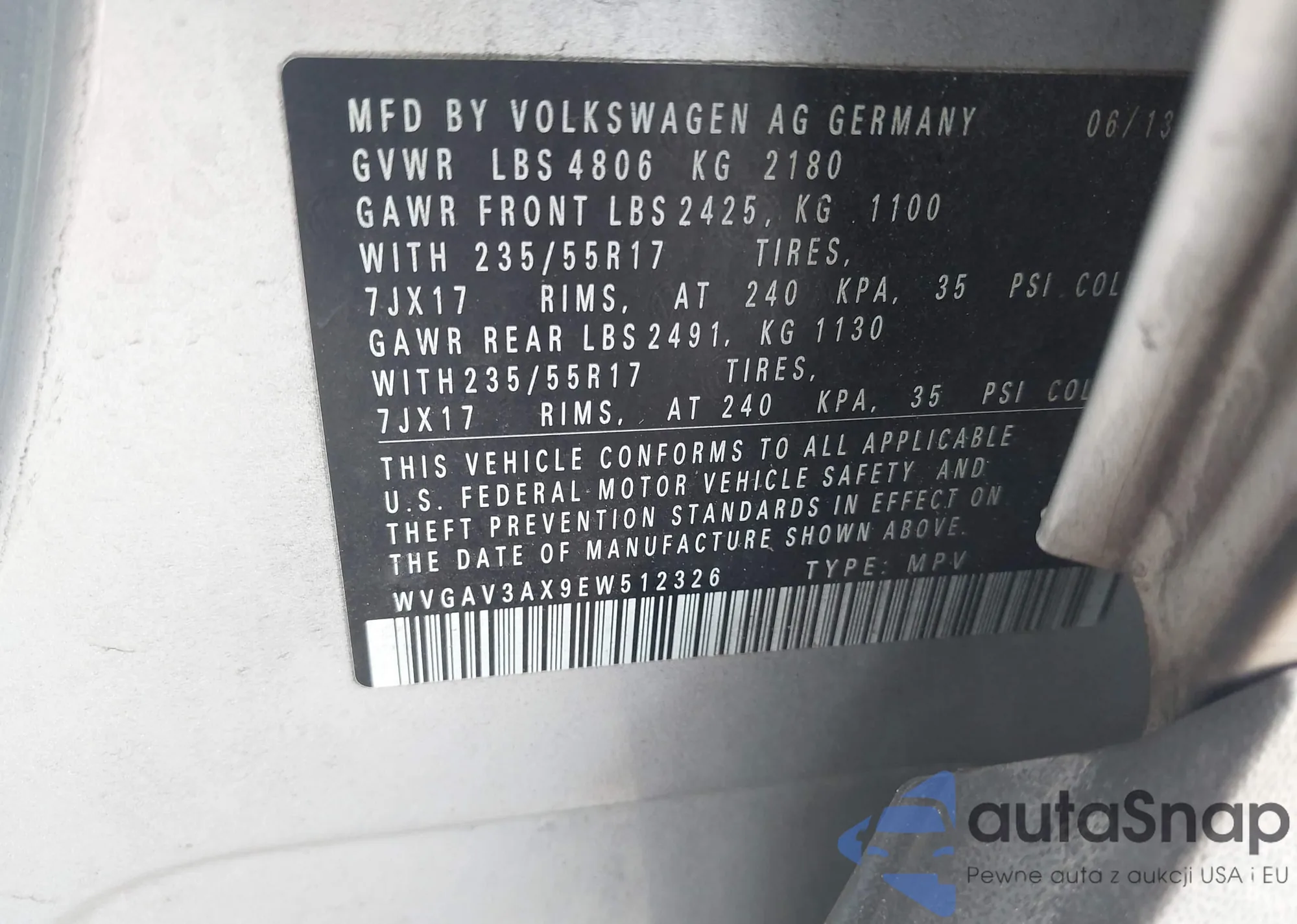 • VIN WVGAV3AX9EW512326