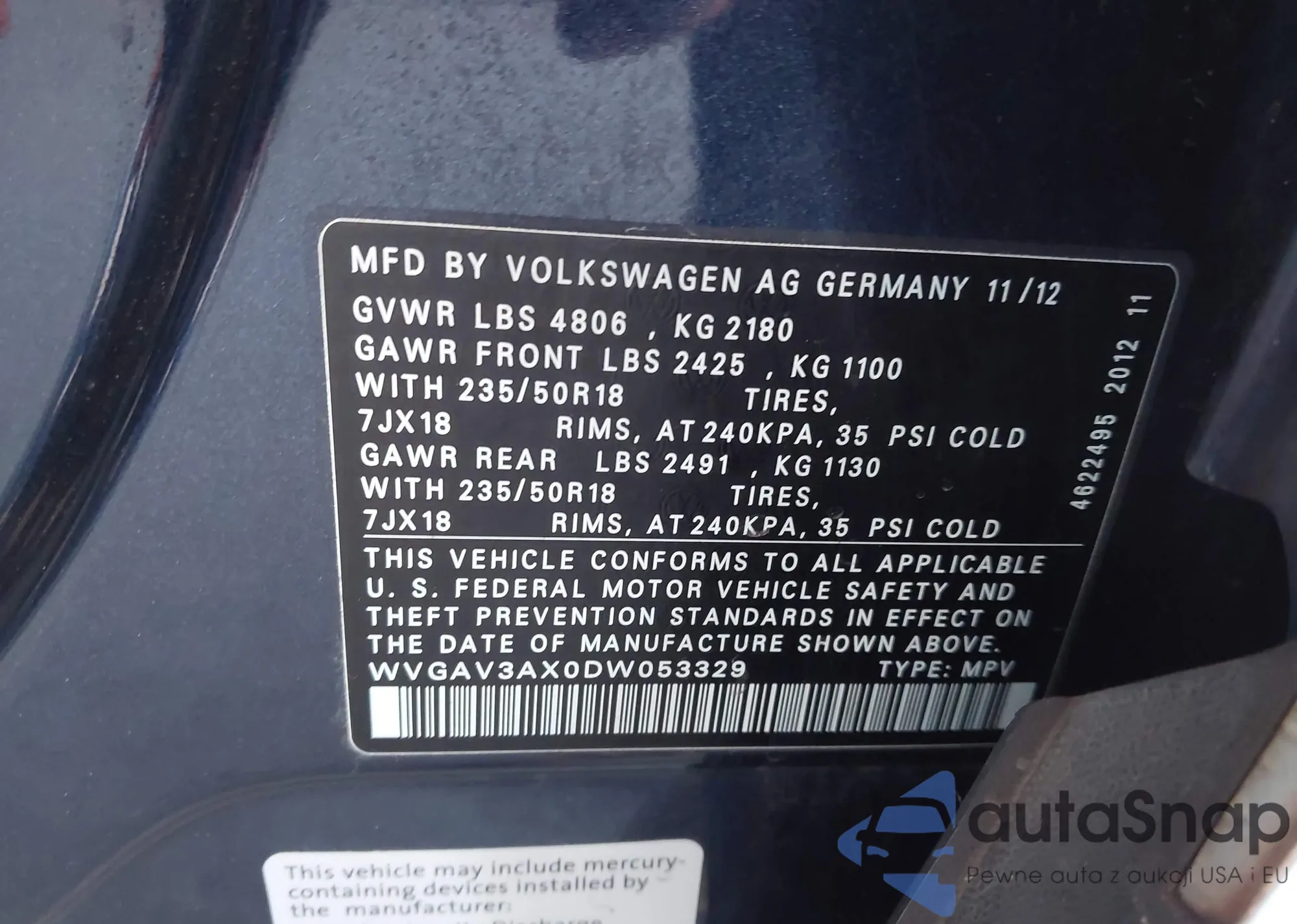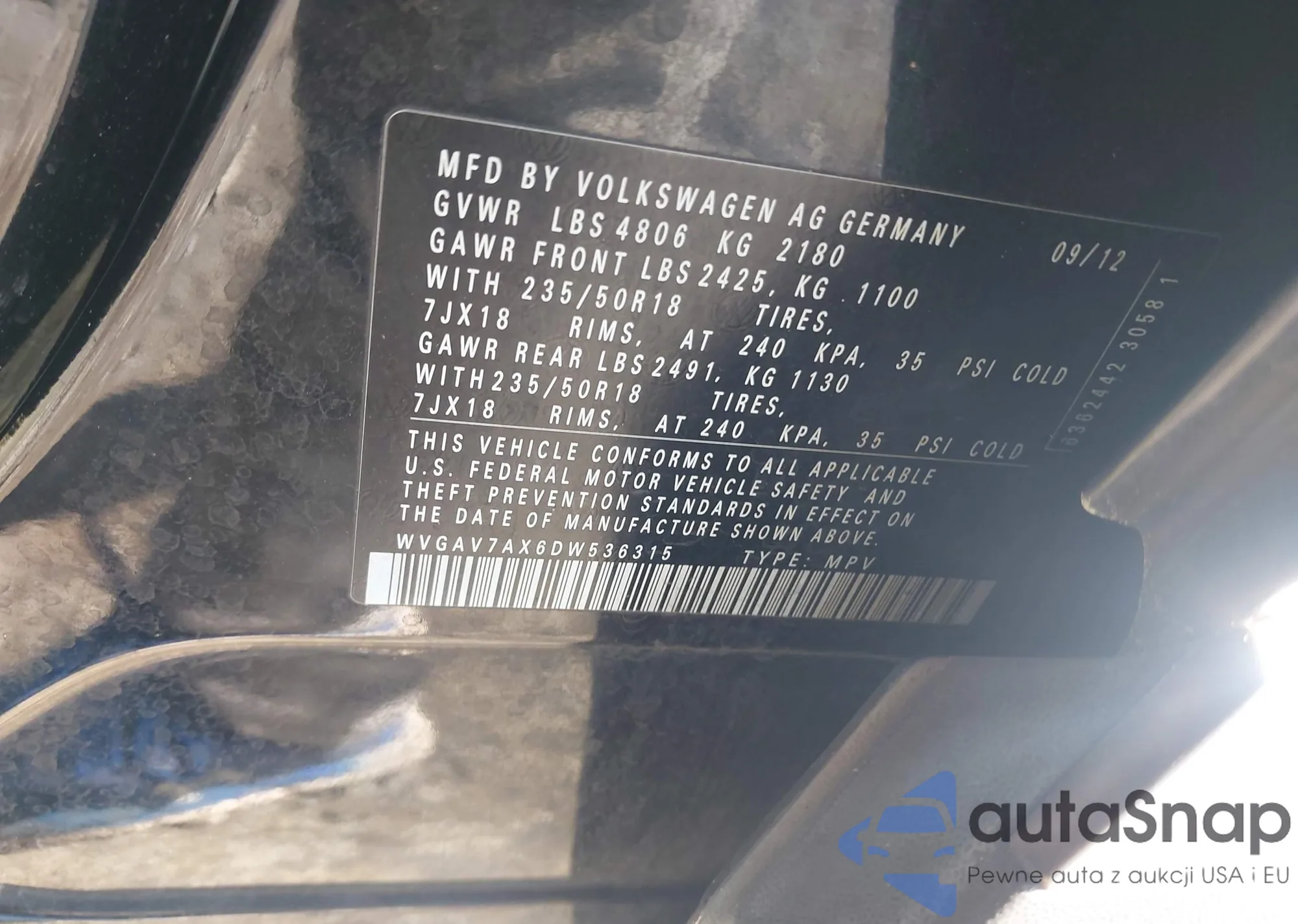 • VIN WVGAV7AX6DW536315