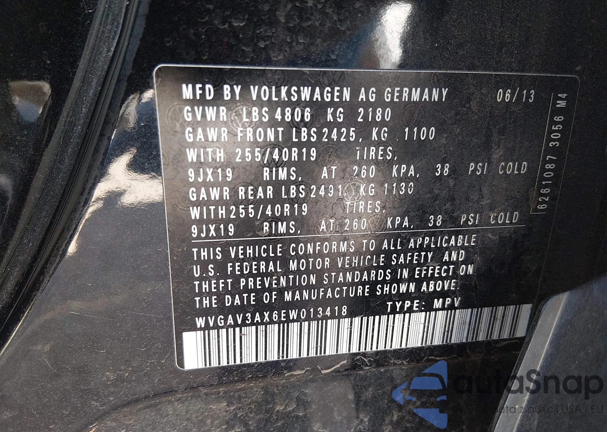 • VIN WVGAV3AX6EW013418