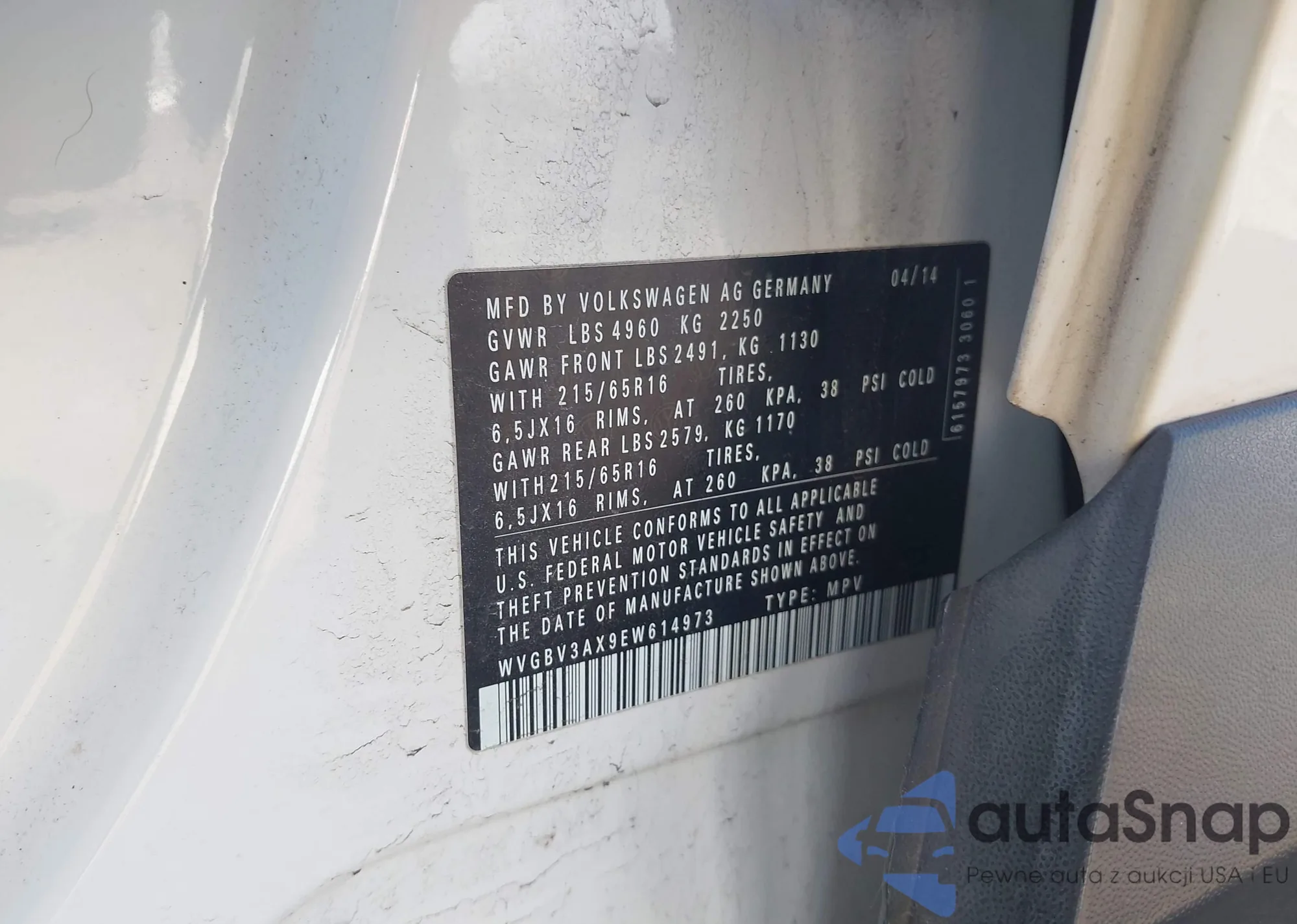 • VIN WVGBV3AX9EW614973