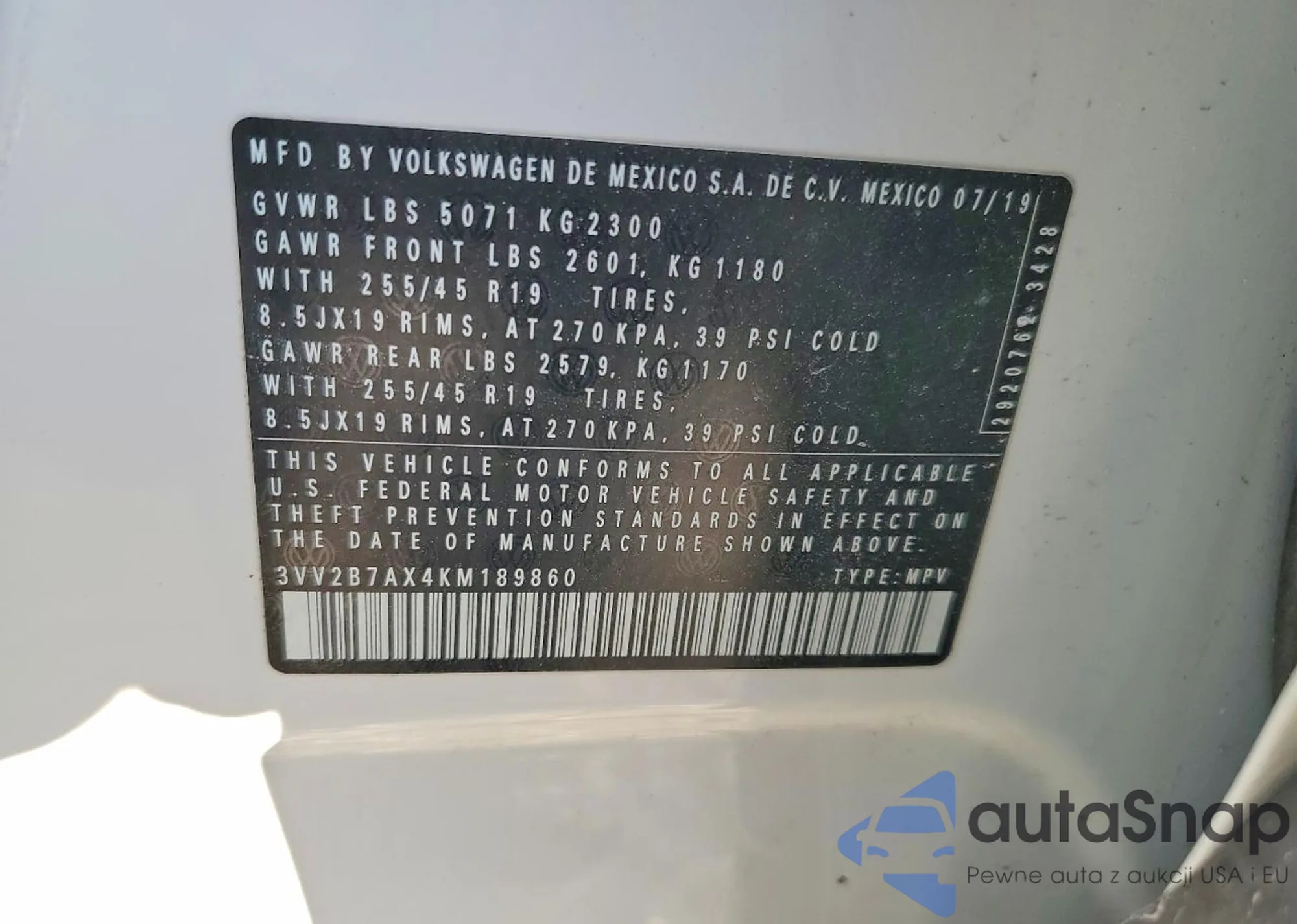 • VIN 3VV2B7AX7KM079952