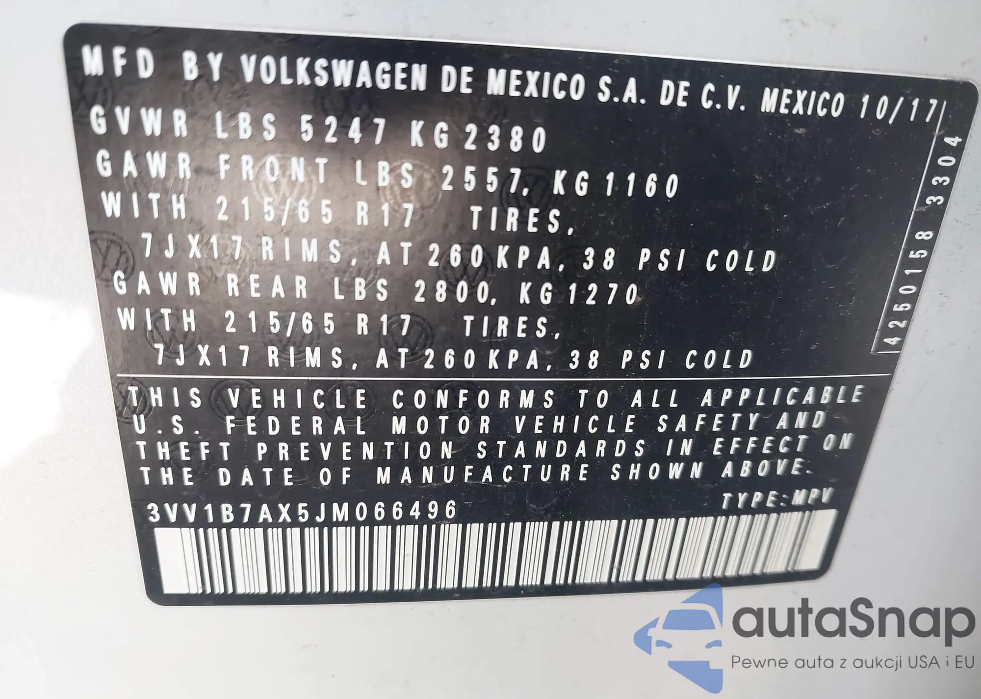 • VIN 3VV1B7AX5JM066496