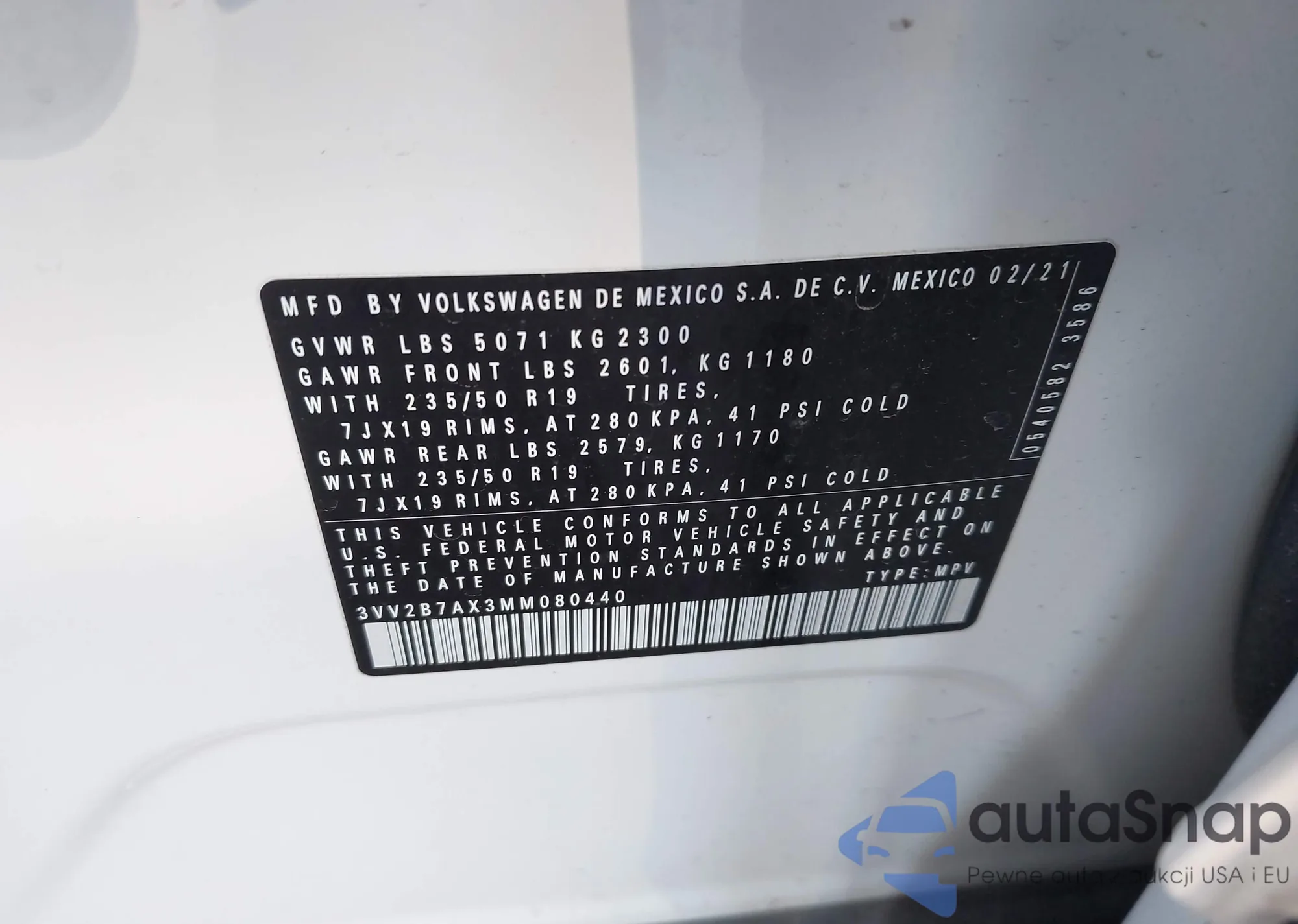 • VIN 3VV2B7AX3MM080440
