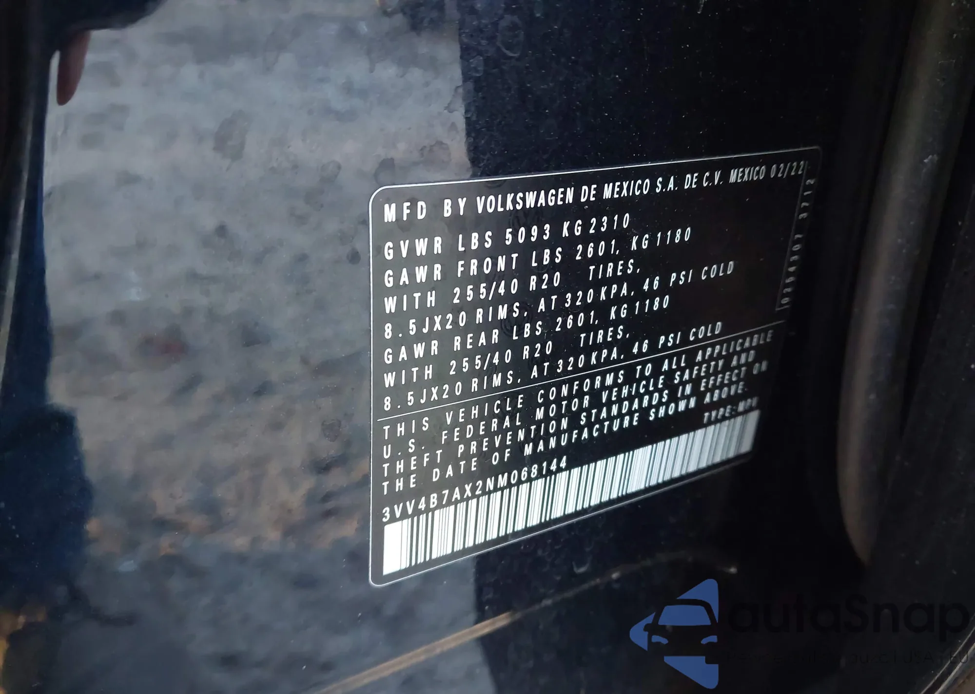 • VIN 3VV4B7AX2NM068144