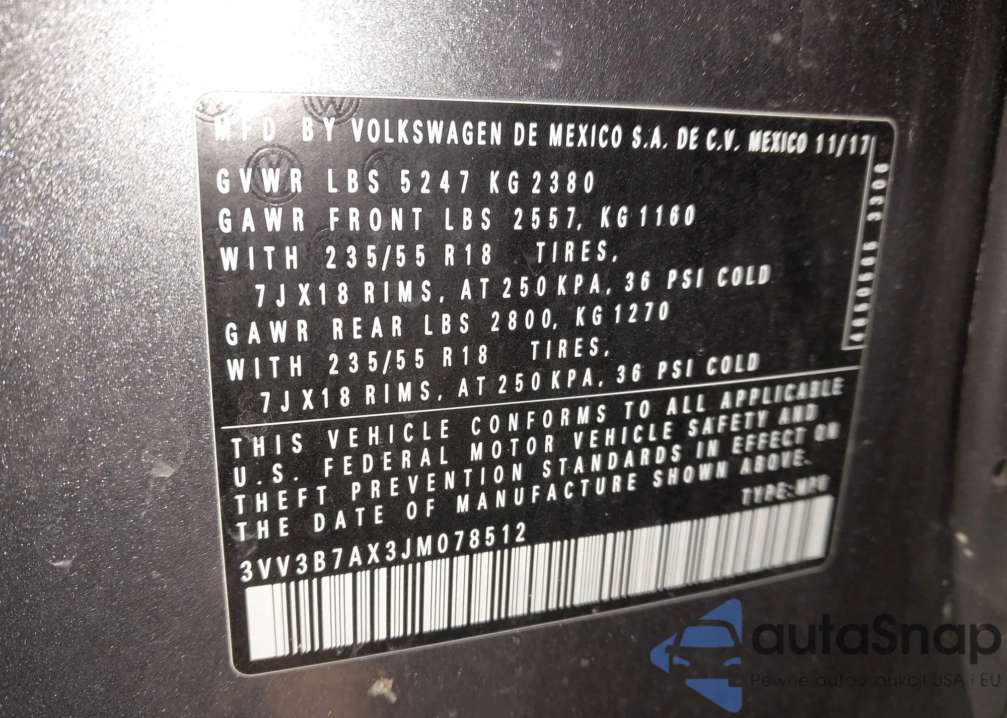 • VIN 3VV3B7AX3JM078512