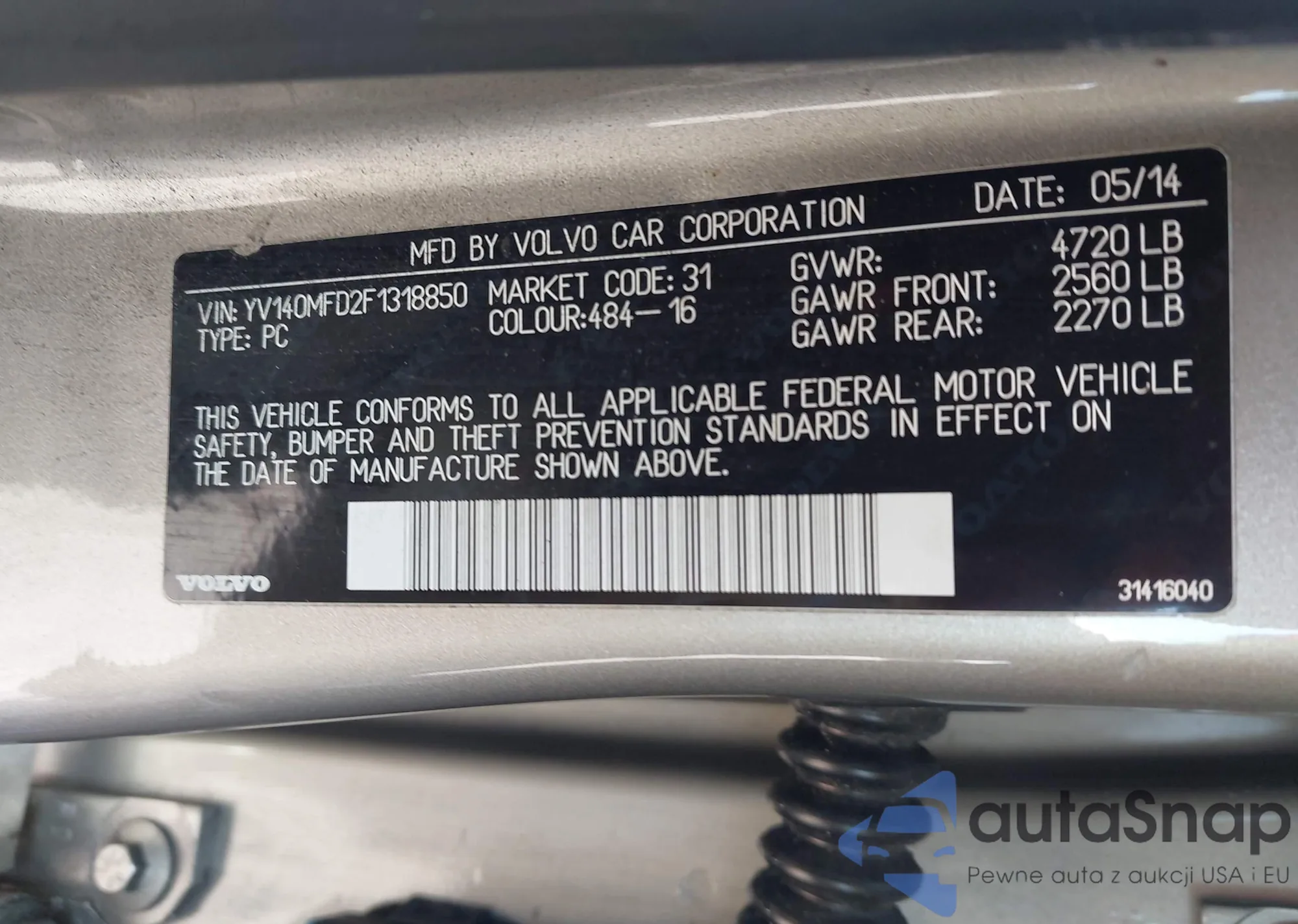 LOT: 44703951 VIN: YV140MFD2F1318850