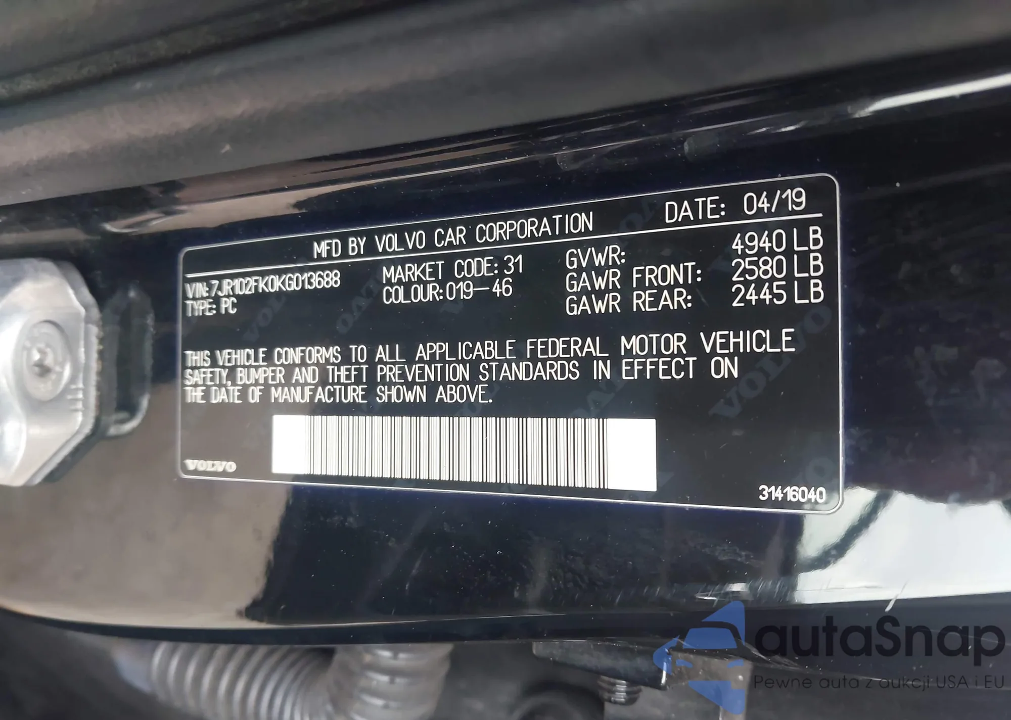 • VIN 7JR102FK0KG013688