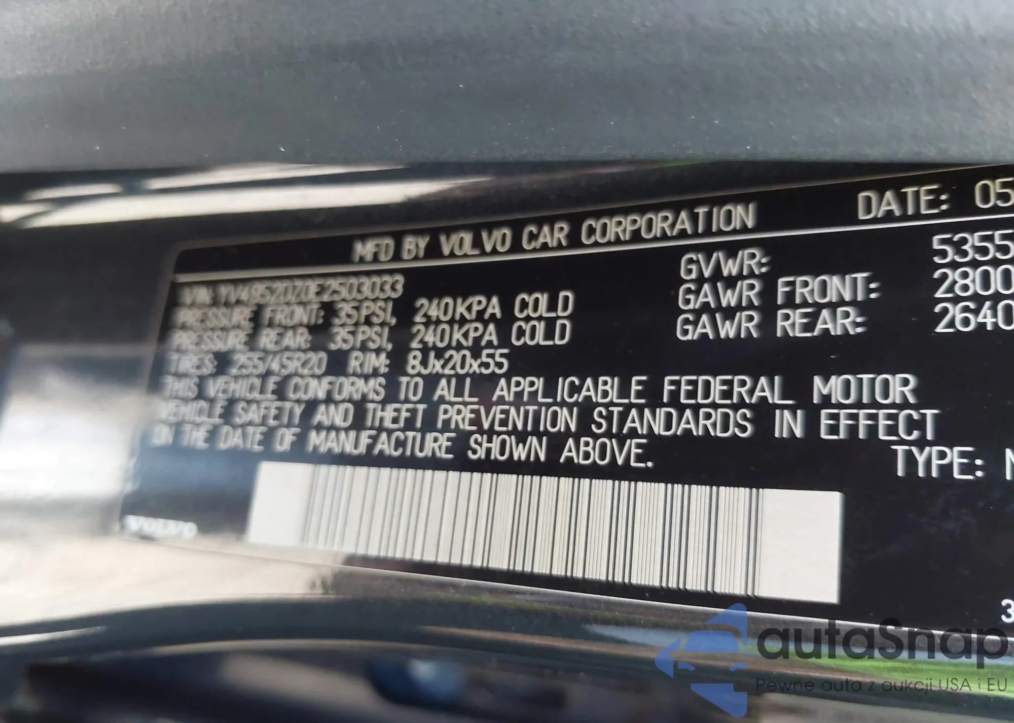 LOT: 44567719 VIN: YV4952DZ0E2503033