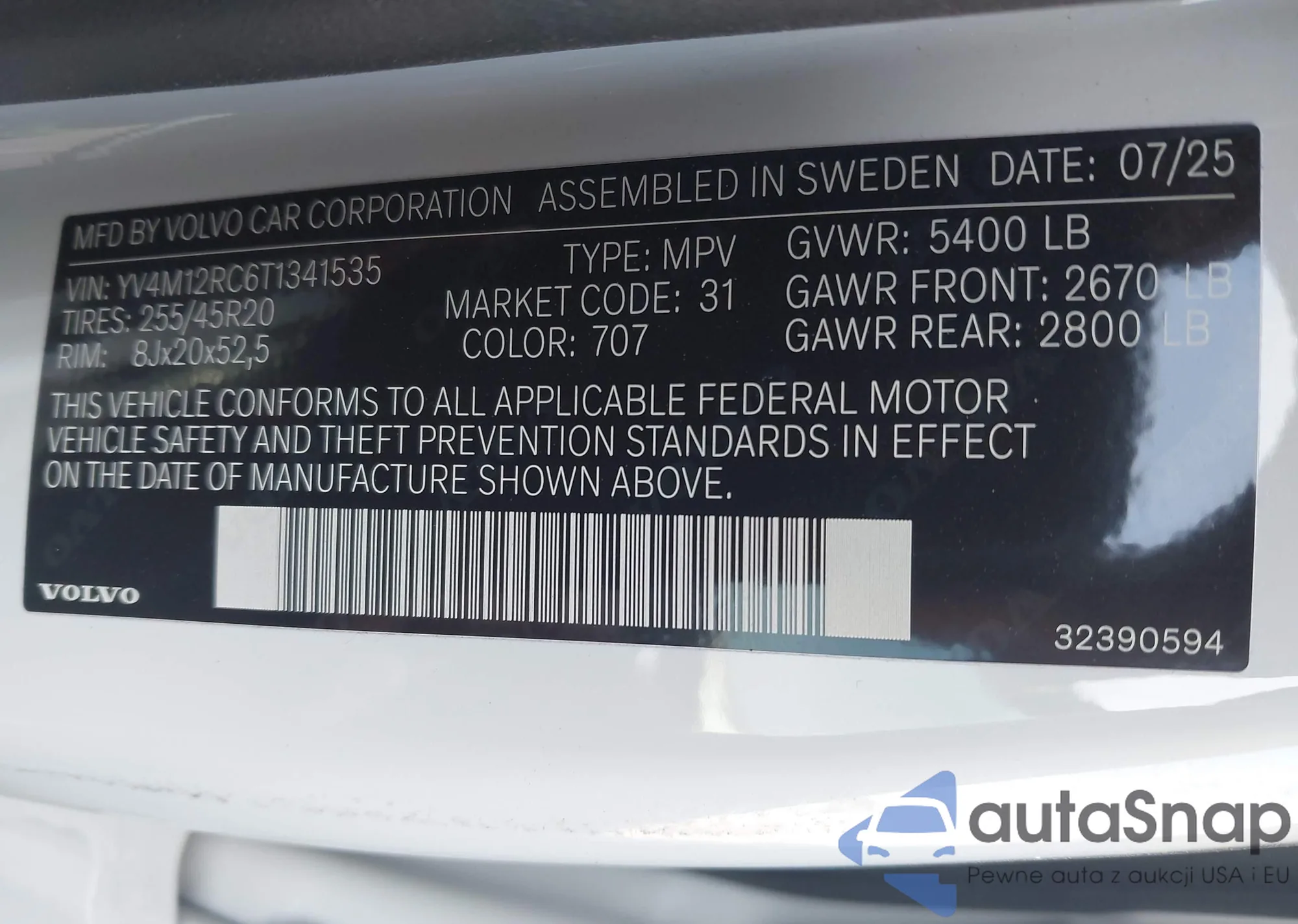 • VIN YV4M12RC6T1341535