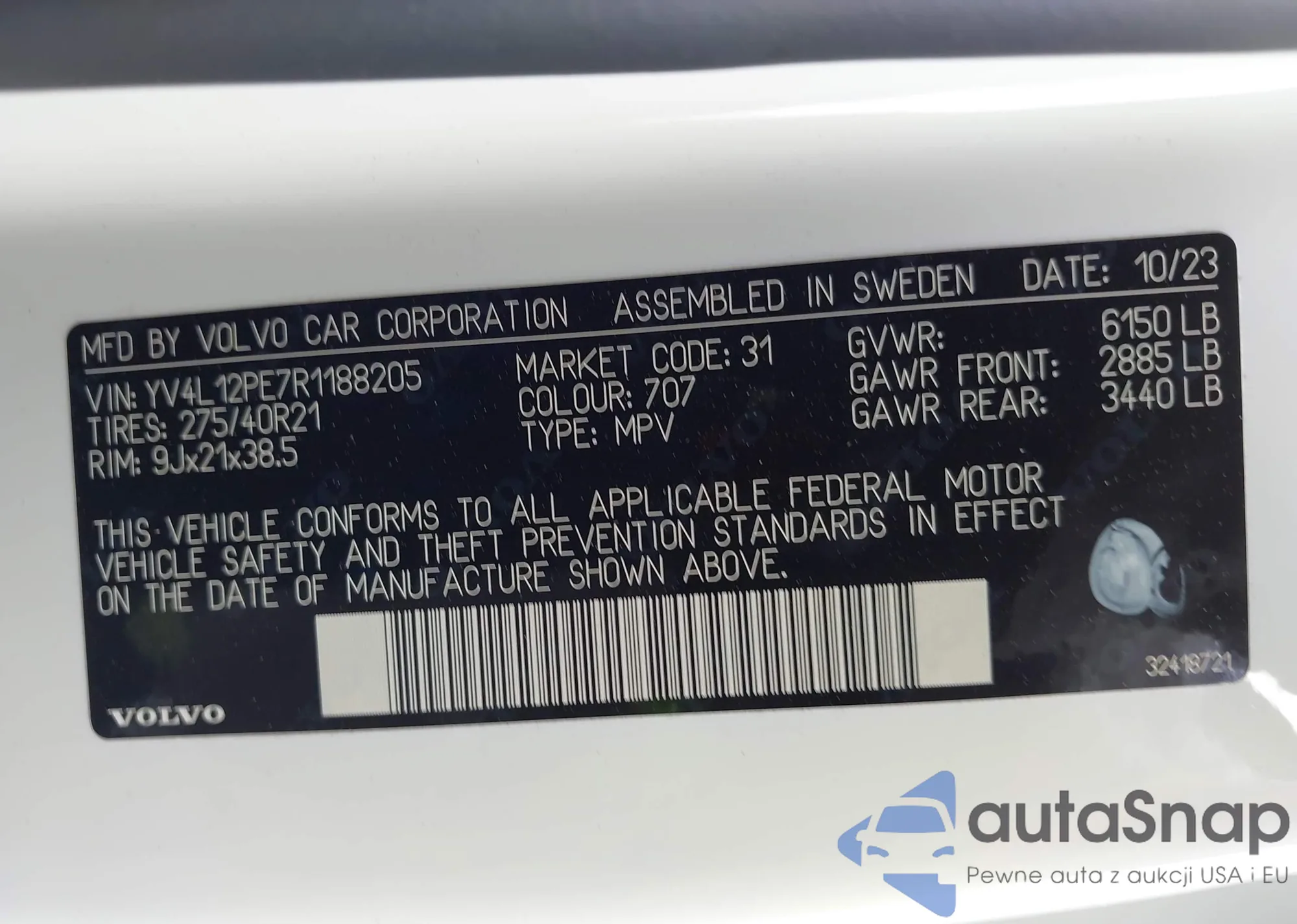 • VIN YV4L12PE7R1188205