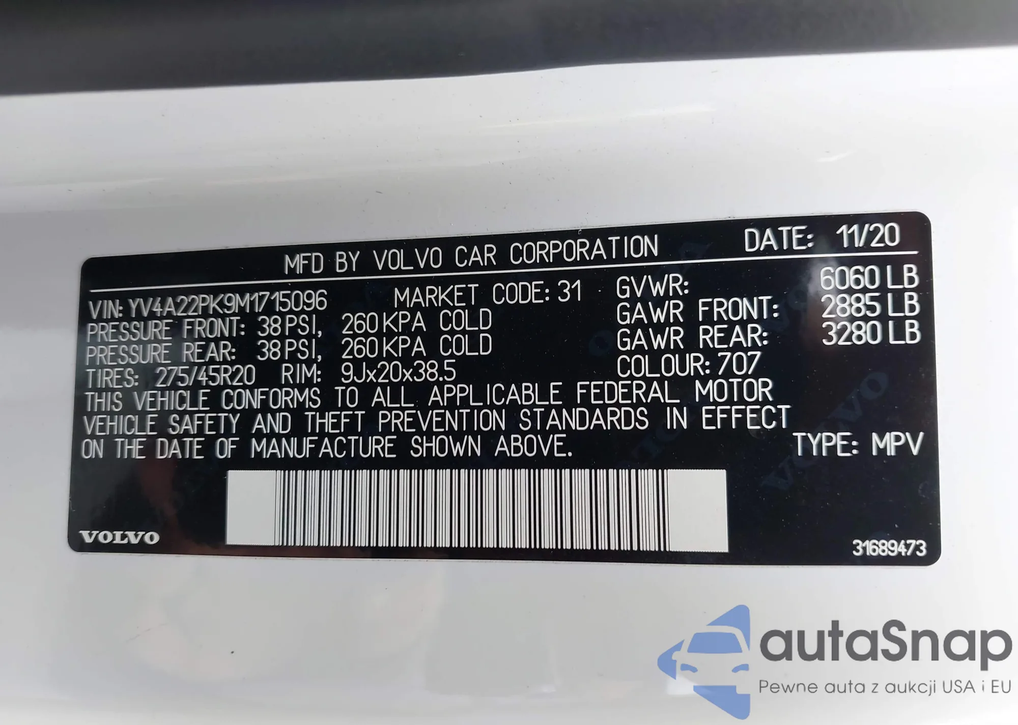 • VIN YV4A22PK9M1715096