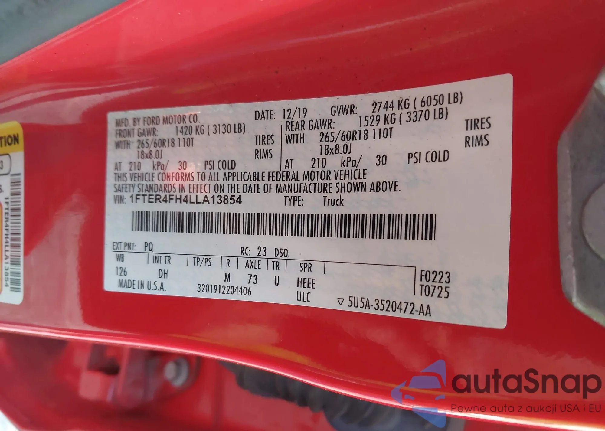 LOT: 40922759 VIN: 1FTER4FH4LLA13854