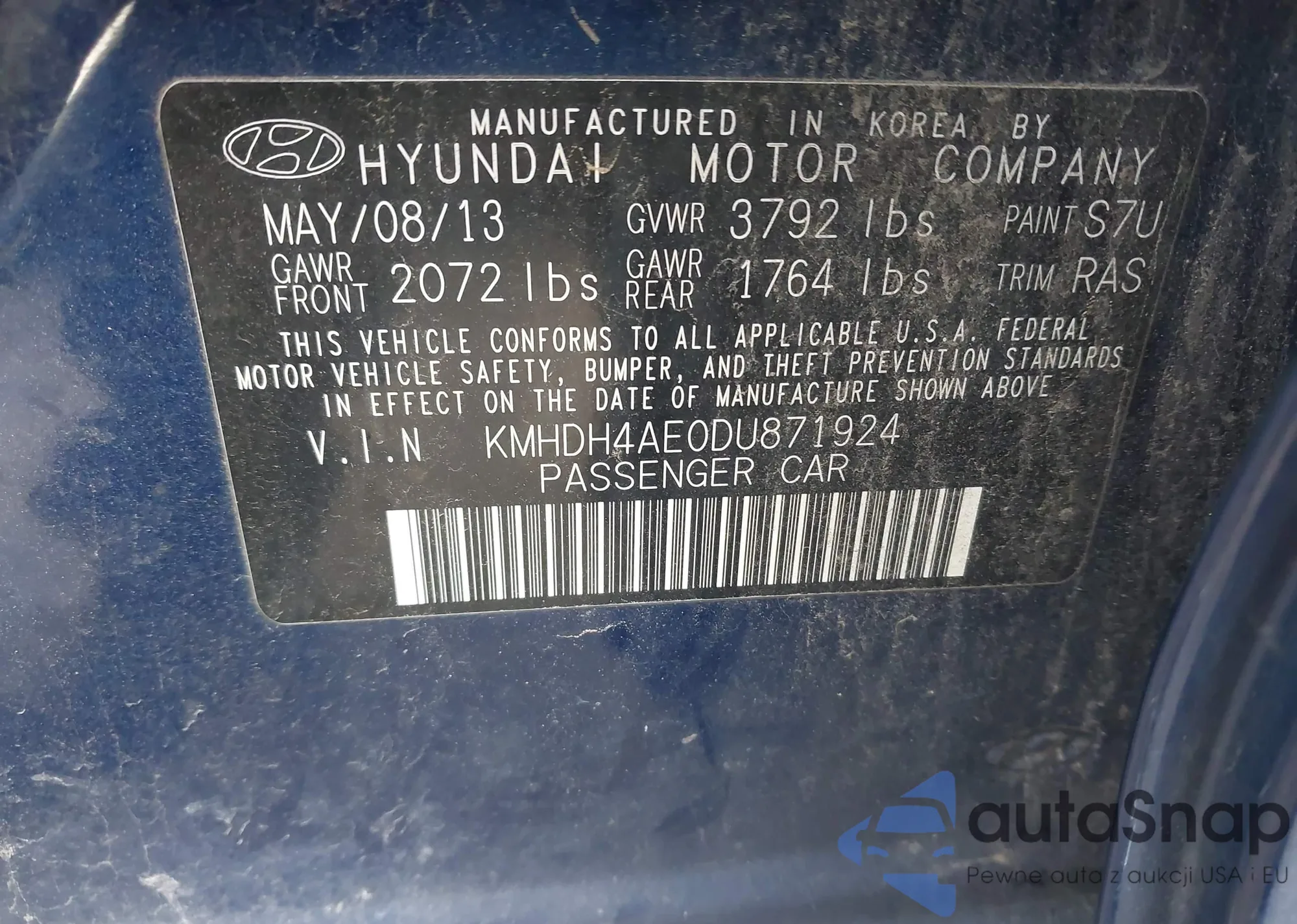 • VIN KMHDH4AE0DU871924