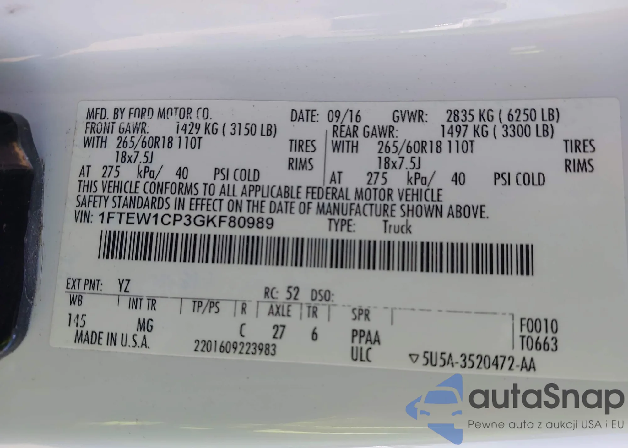 • VIN 1FTEW1CP3GKF80989
