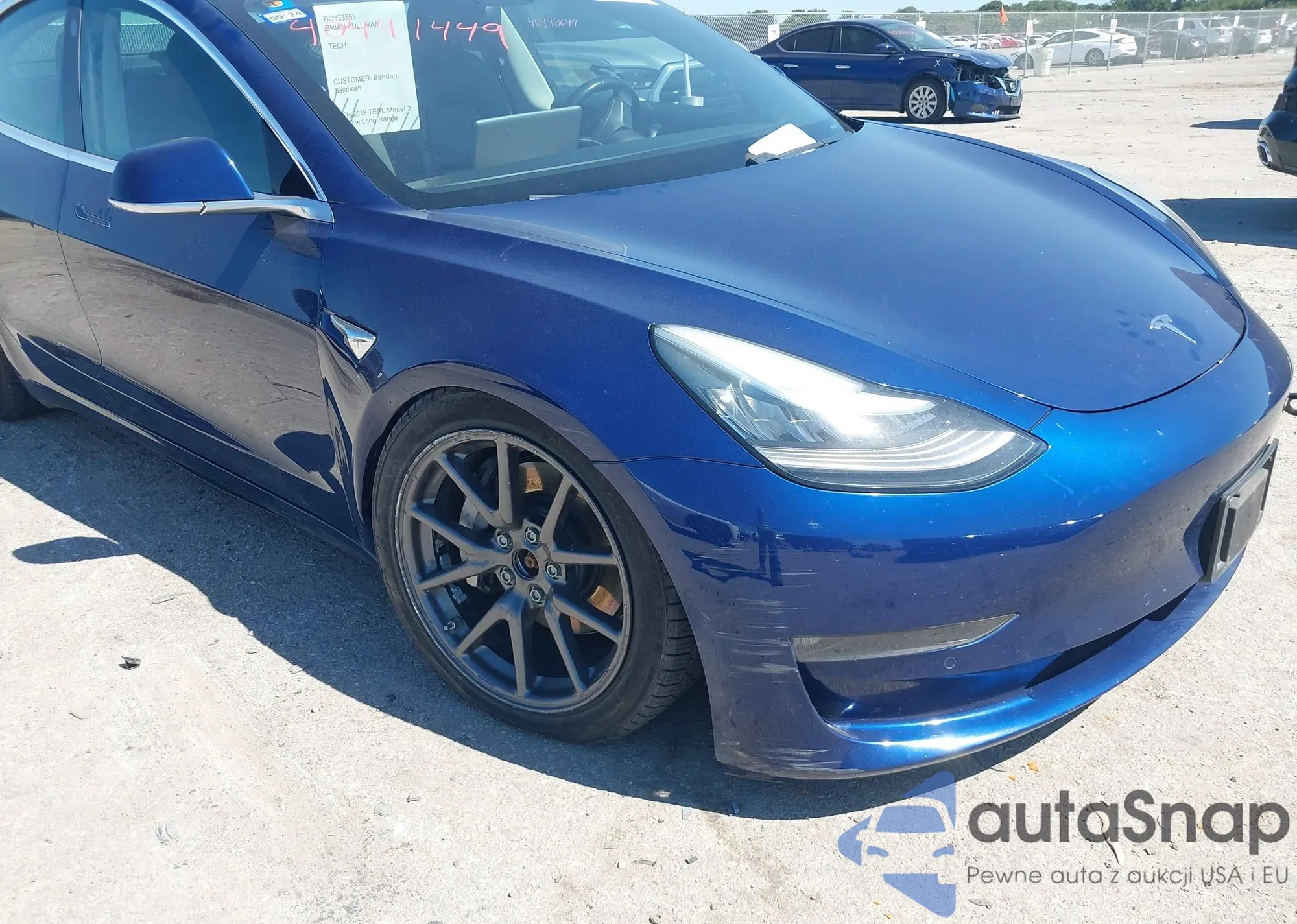 2018 Tesla Model 3 Long Range/Performance z USA, uszkodzony, nr VIN 5YJ3E1EB0JF144438