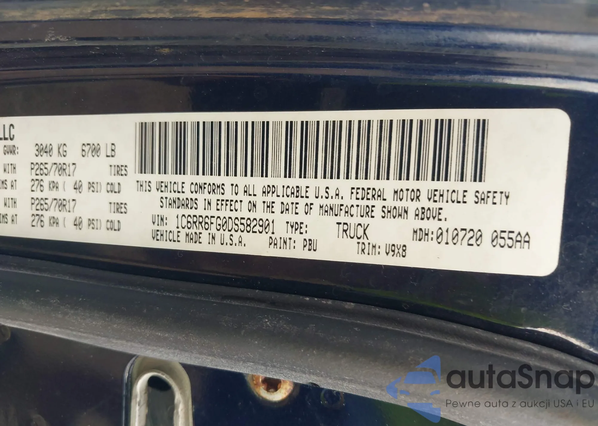 • VIN 1C6RR6FG0DS582901