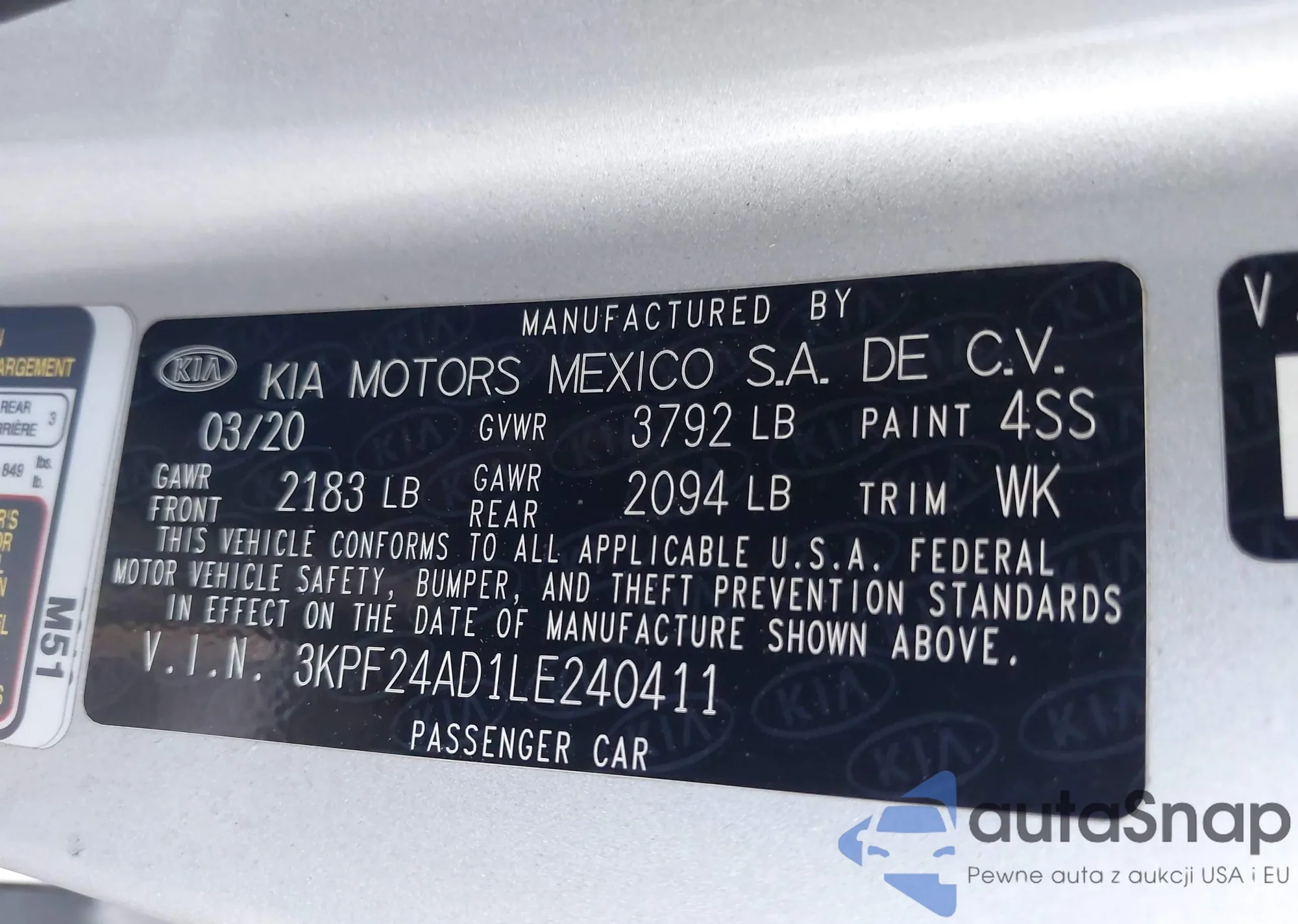 LOT: 40891619 VIN: 5NPEF4JA2LH031194