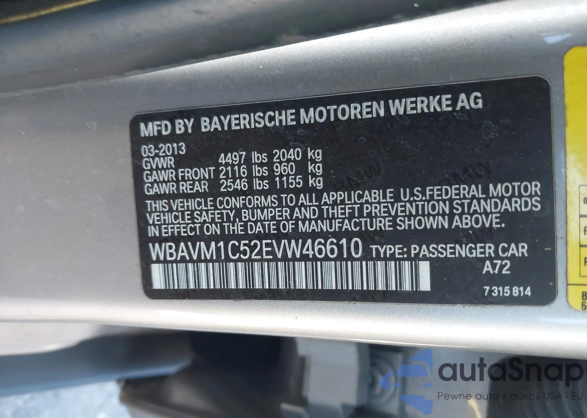 • VIN WBAVM1C52EVW46610