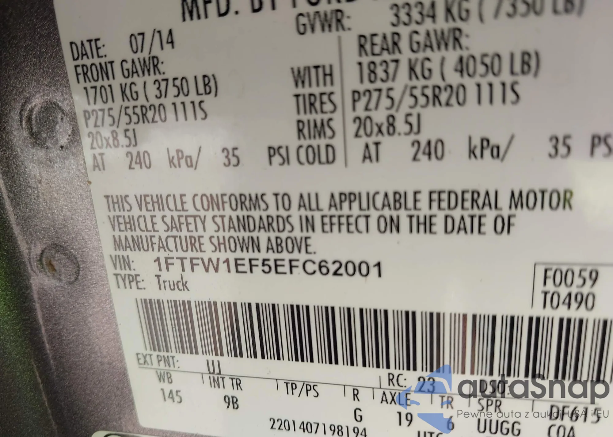 • VIN 1FTFW1EF5EFC62001