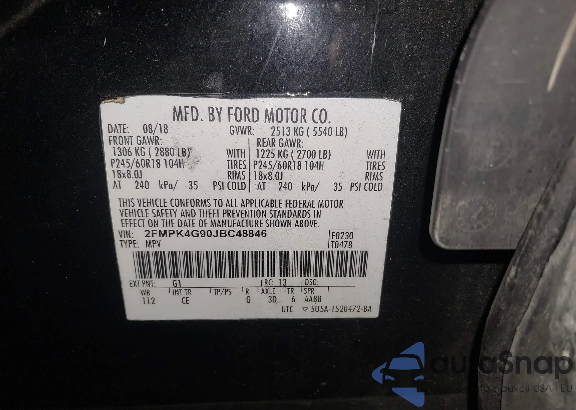 • VIN 2FMPK4G90JBC48846