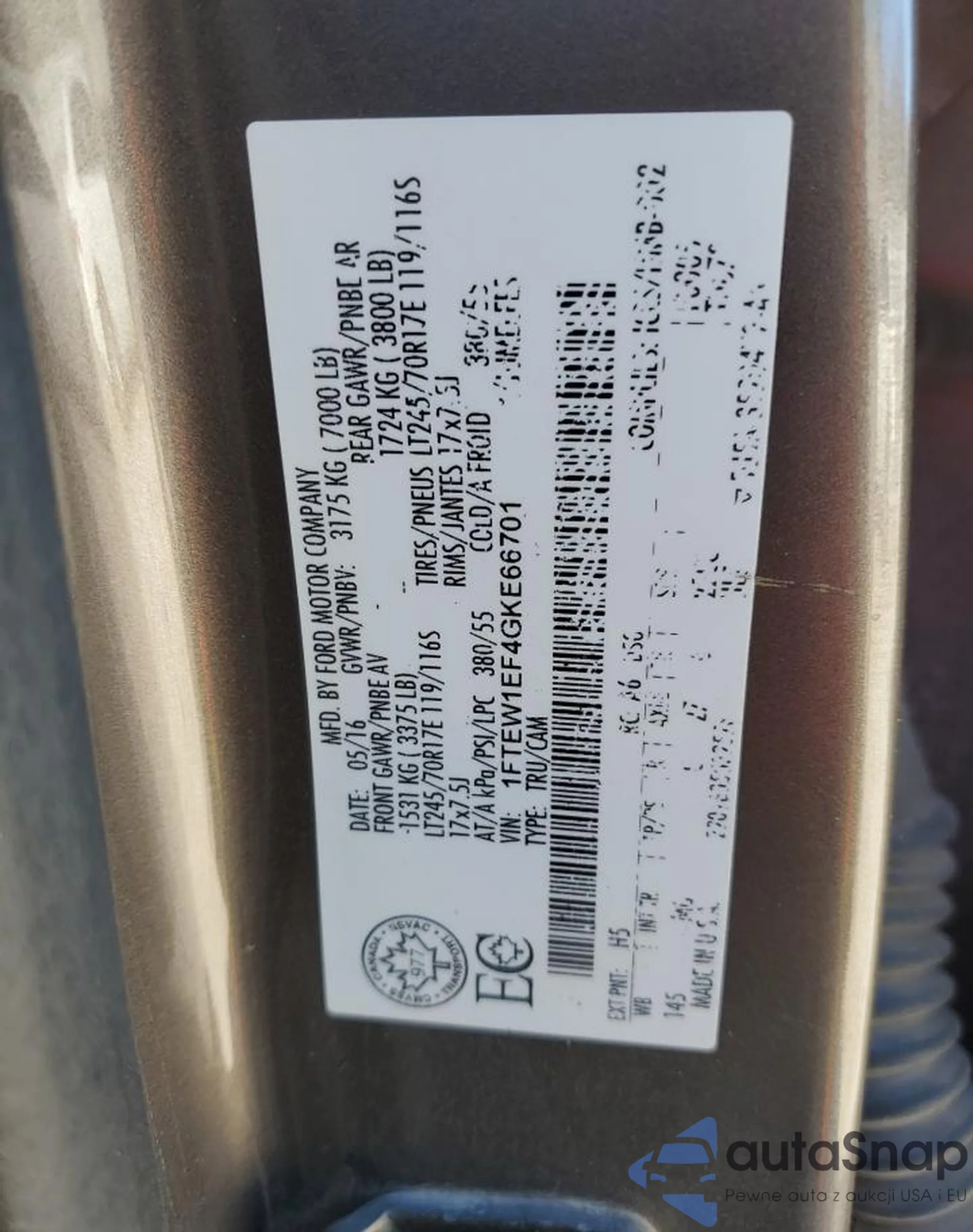 • VIN 4T1BF1FK3GU217904