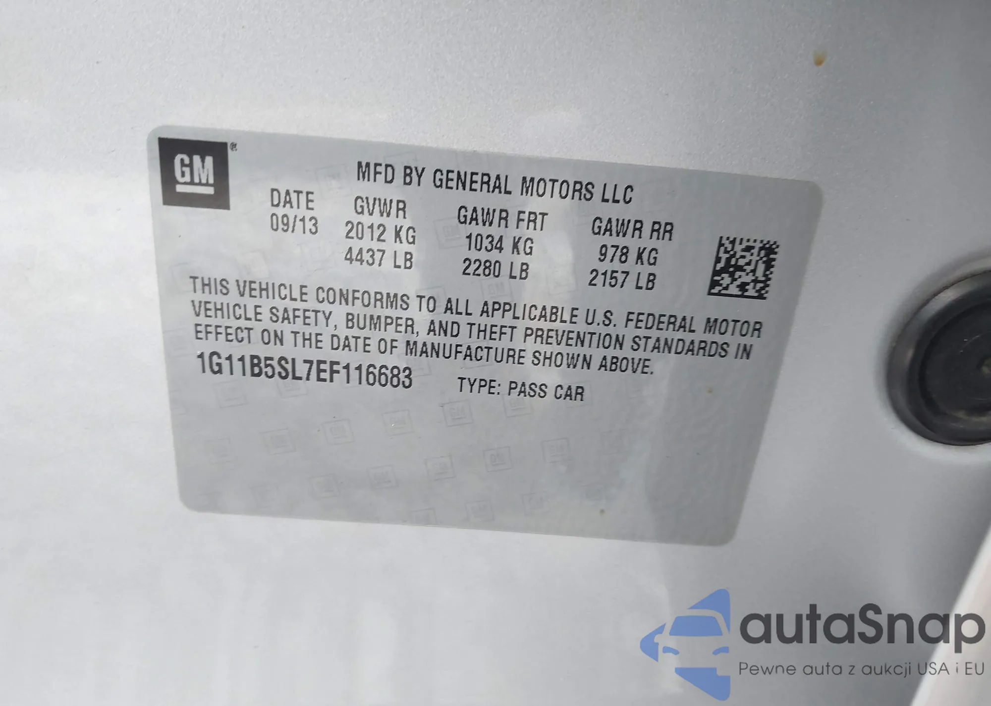 LOT: 41214777 VIN: 1G11B5SL7EF116683