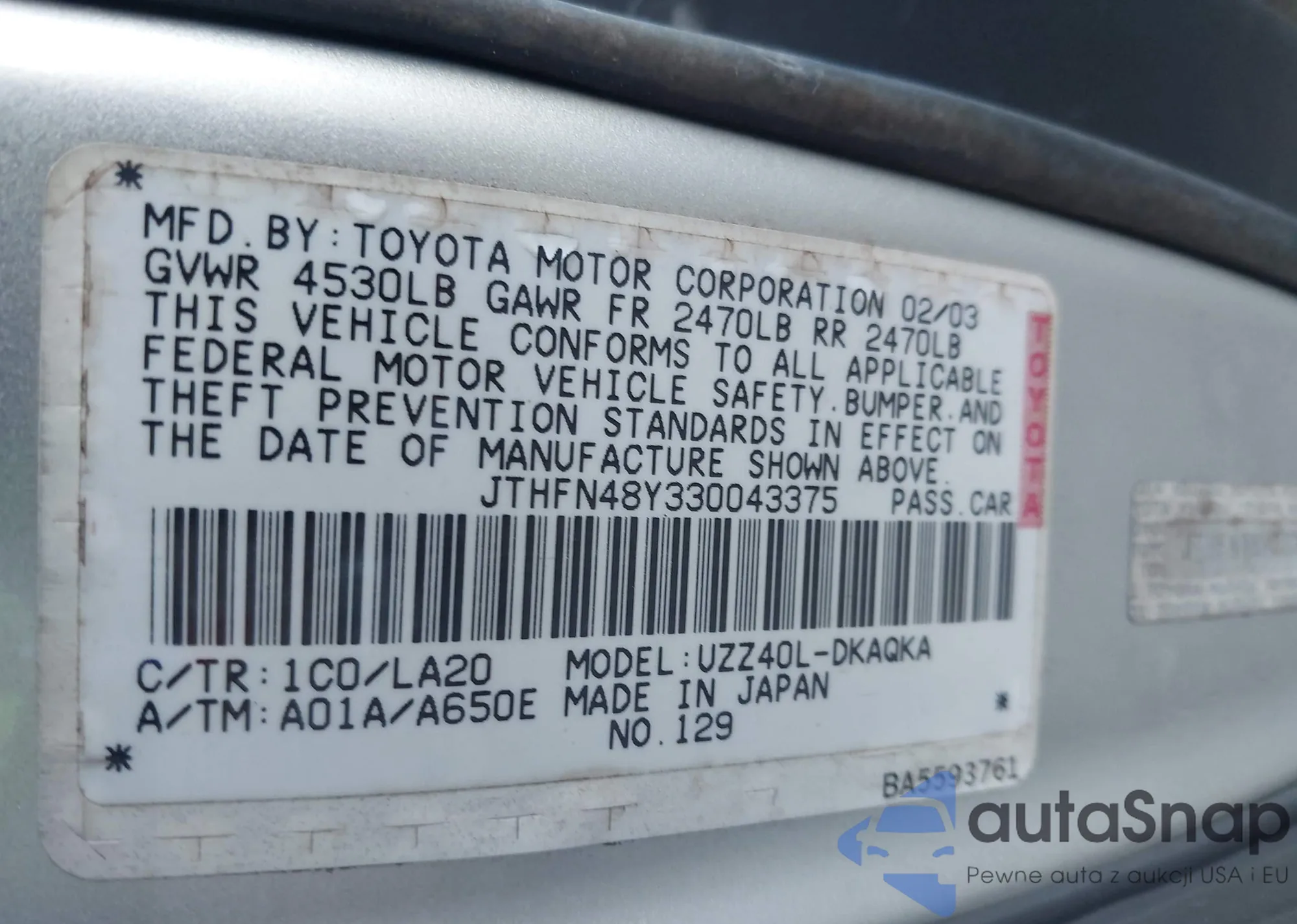 • VIN JTHFN48Y330043375