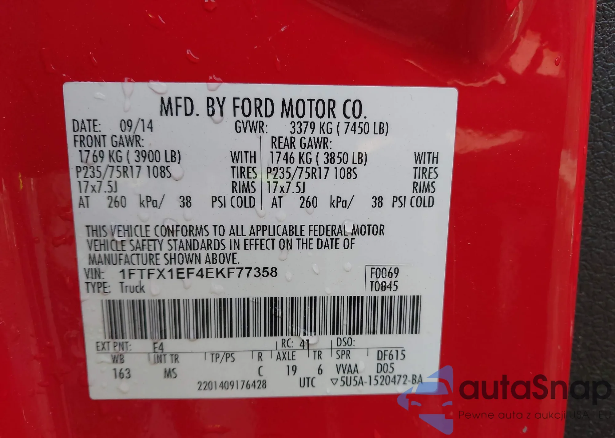 LOT: 40371543 VIN: 1FTFW1CT8EKG18165