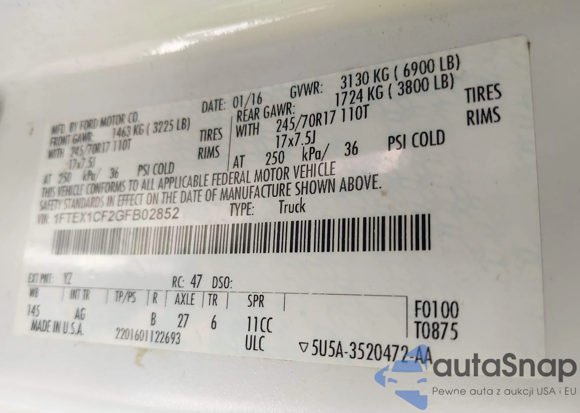 • VIN 1FTFW1ET0DKF14152