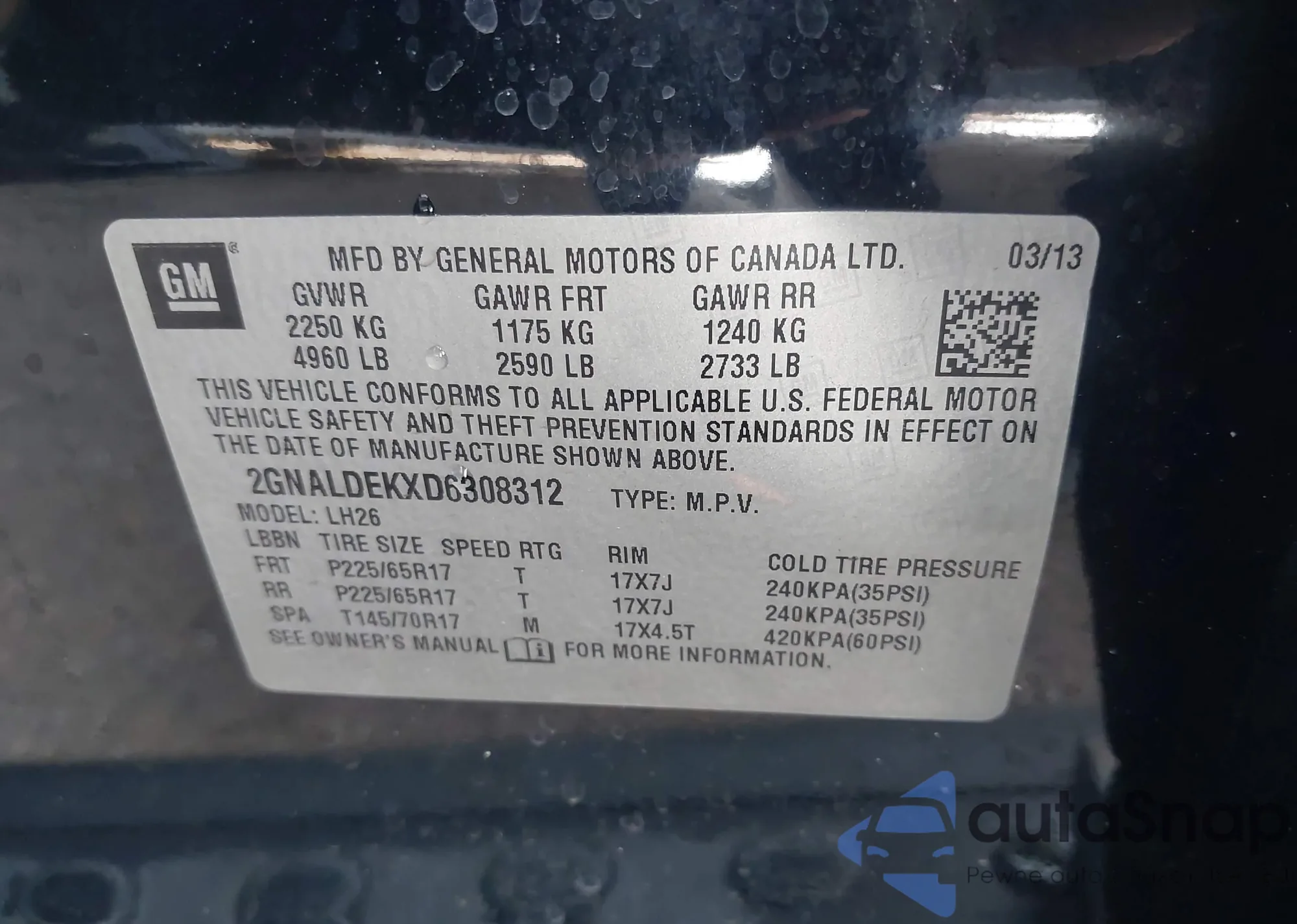 • VIN 2GNALDEKXD6308312