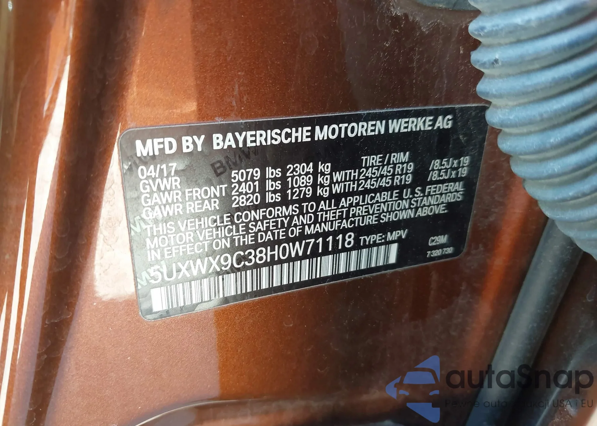 • VIN 5UXWX9C38H0W71118