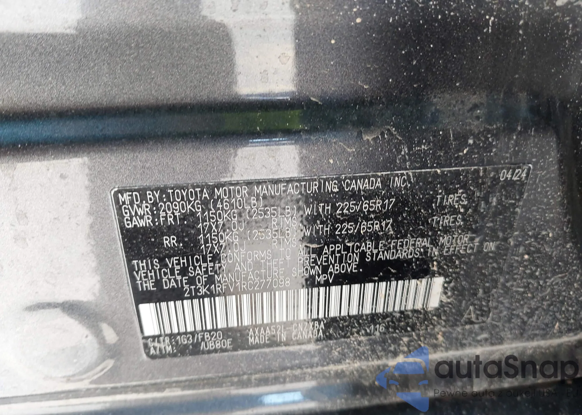 LOT: 40562868 VIN: 2T3K1RFV1RC277098