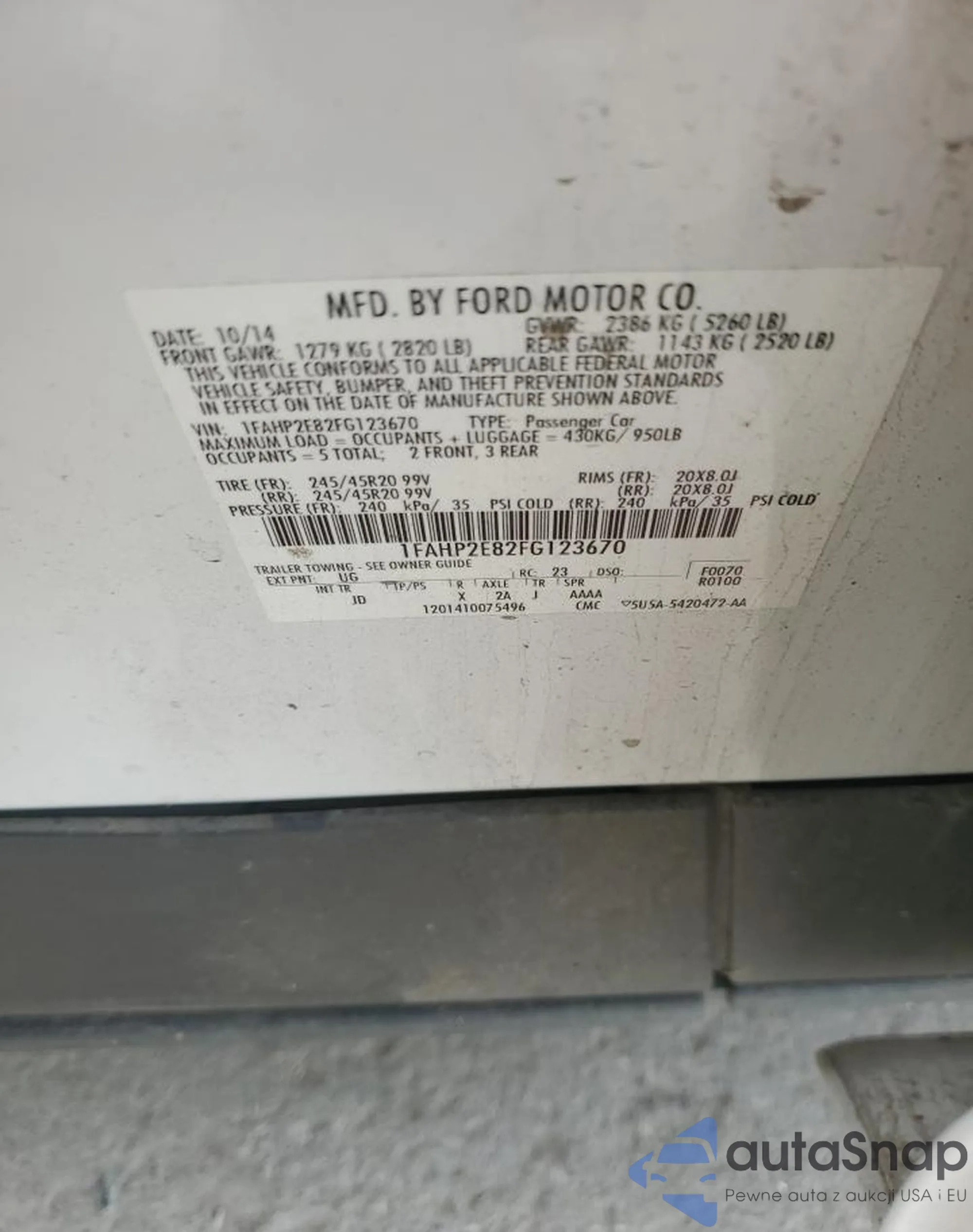 LOT: 81076274 VIN: 1FAHP2E82FG123670