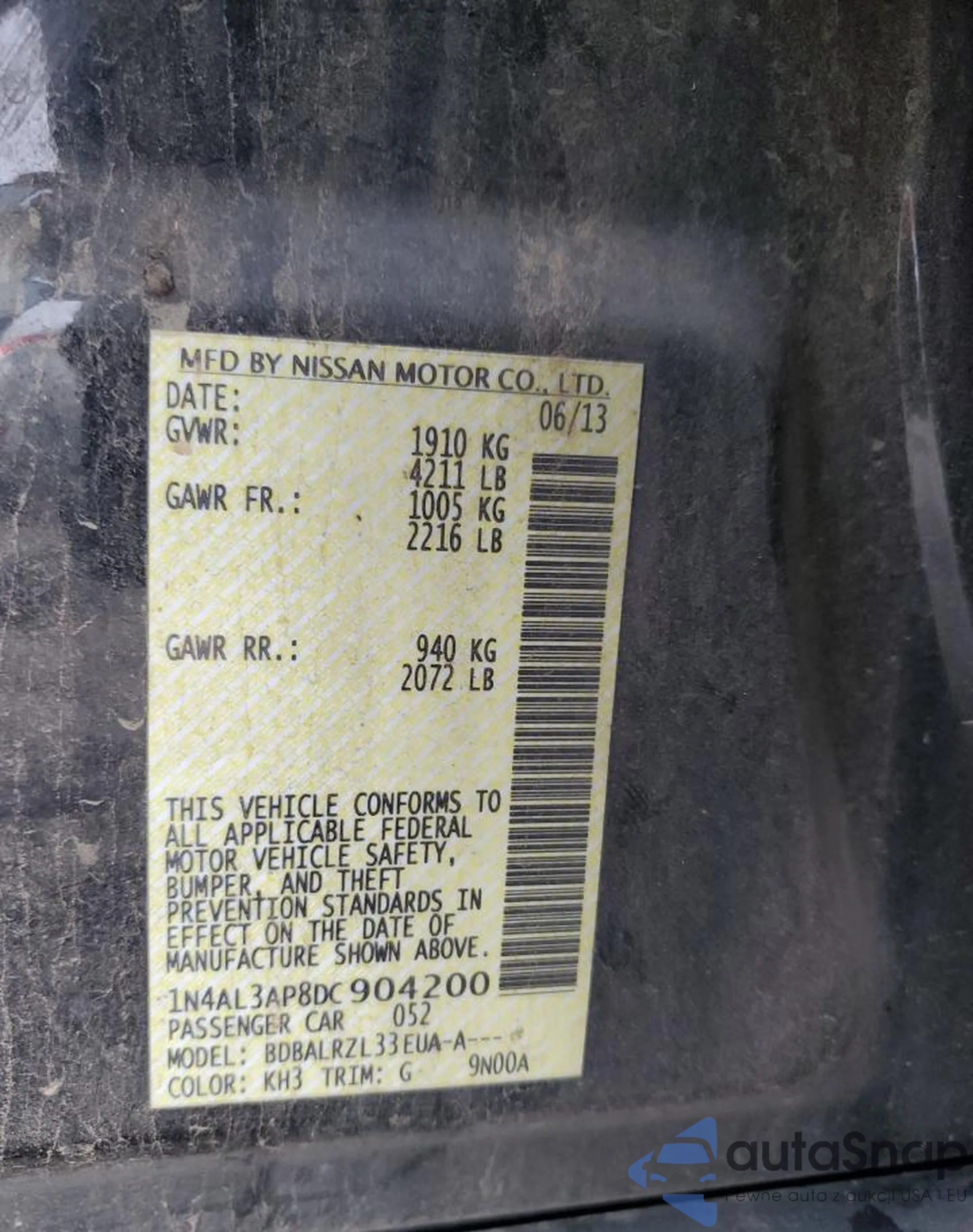 • VIN 1N4BL4BV7KC155927