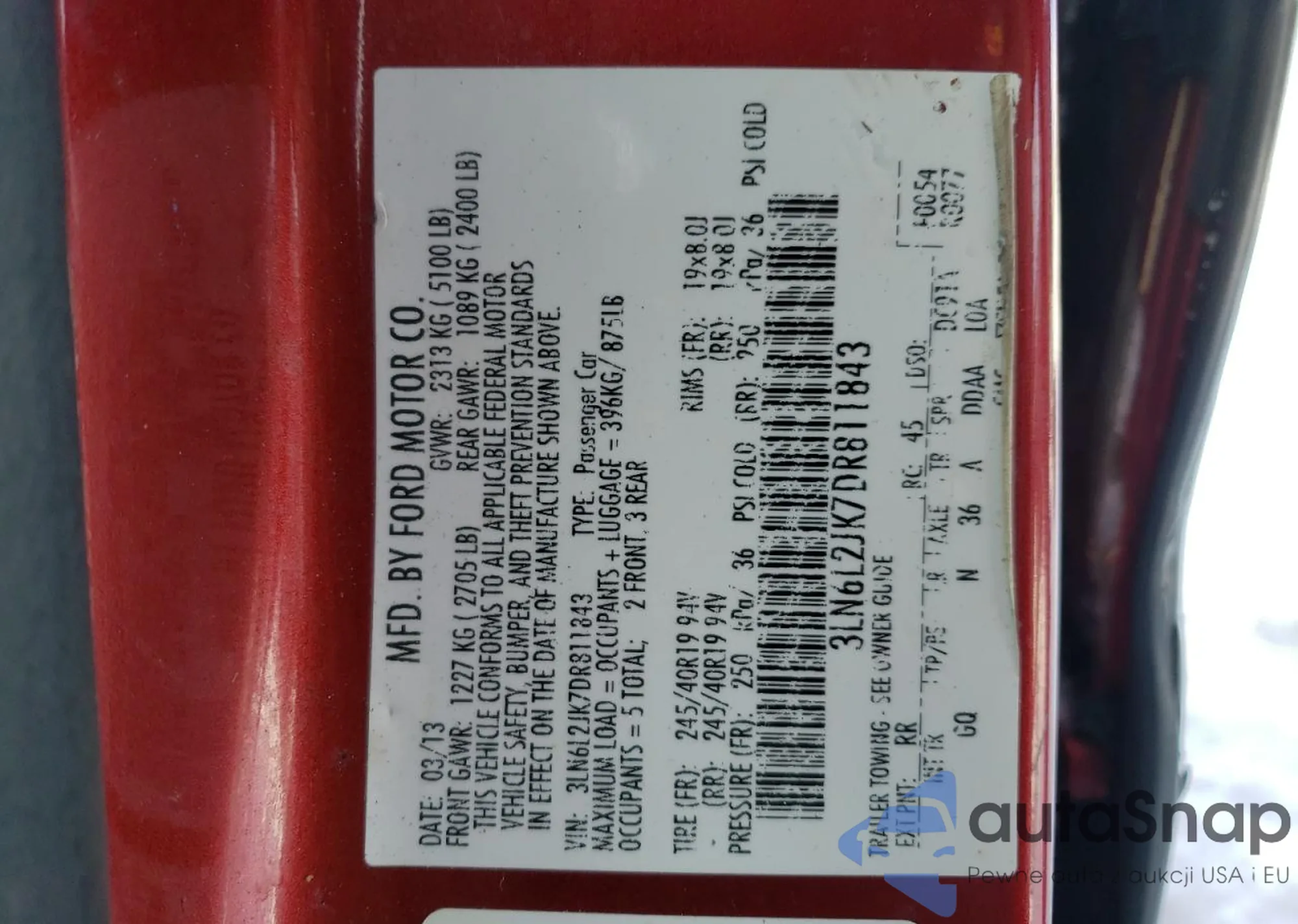 2013 Lincoln Mkz z USA, uszkodzony, nr VIN 3LN6L2JK7DR811843