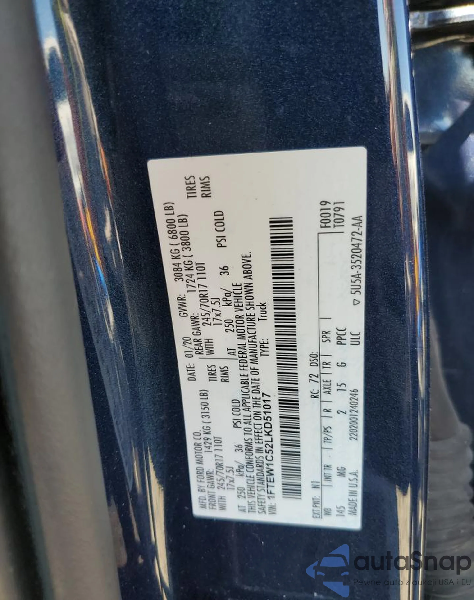 LOT: 76348904 VIN: 1FTEW1C52LKD51017