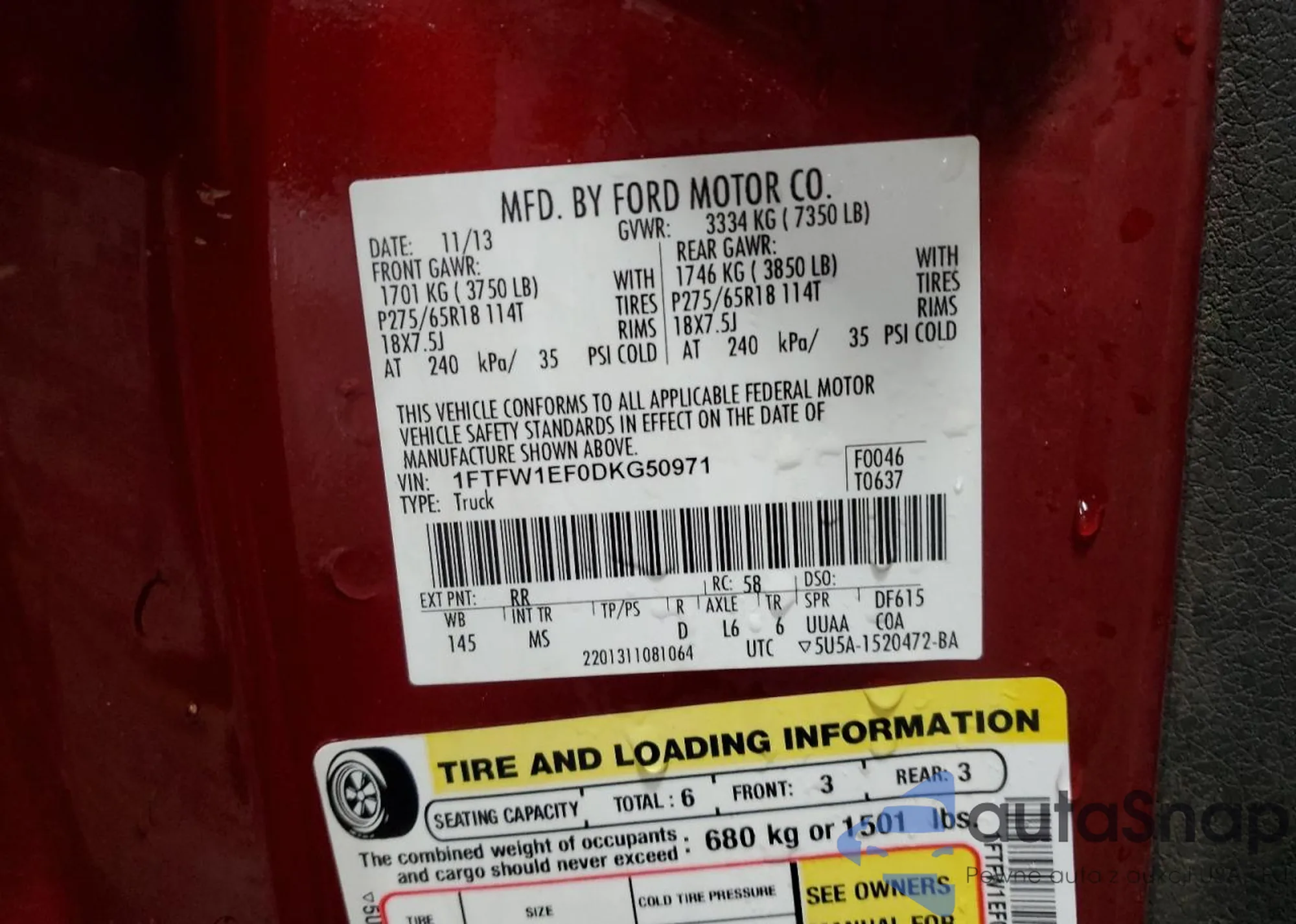 • VIN 1FTFW1EF0DKG50971