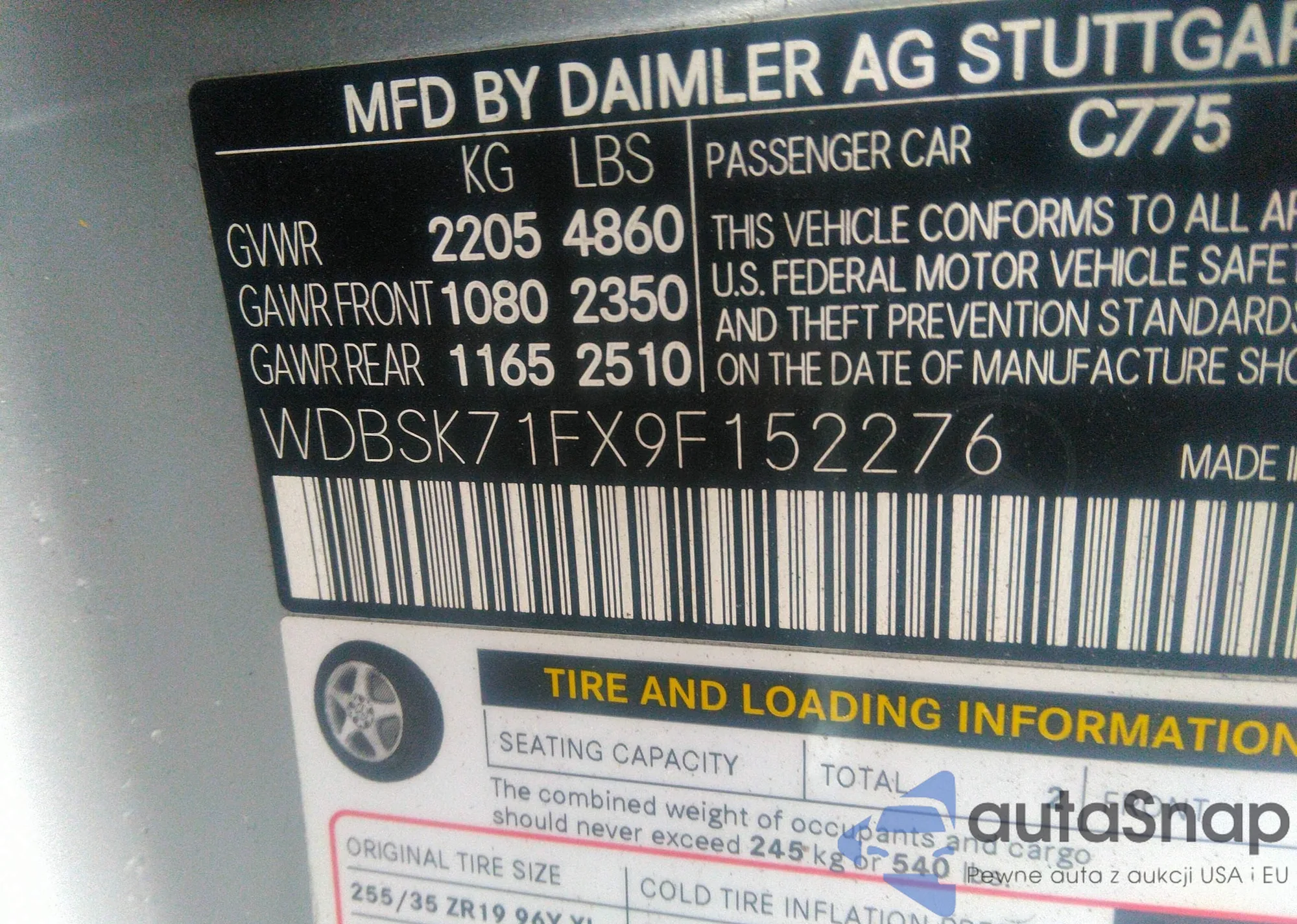 • VIN WDBSK71FX9F152276