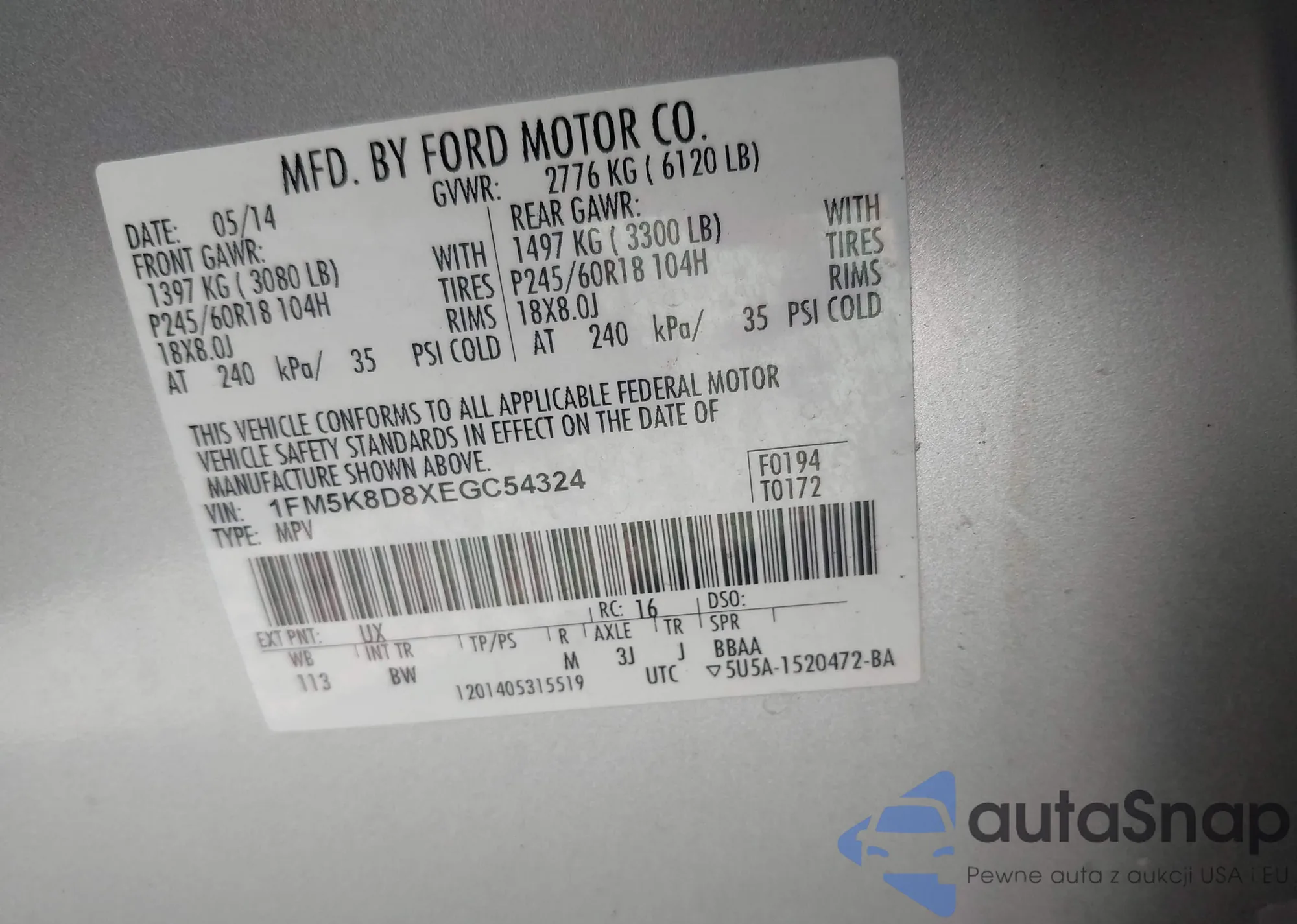 • VIN 1FM5K8D8XEGC54324