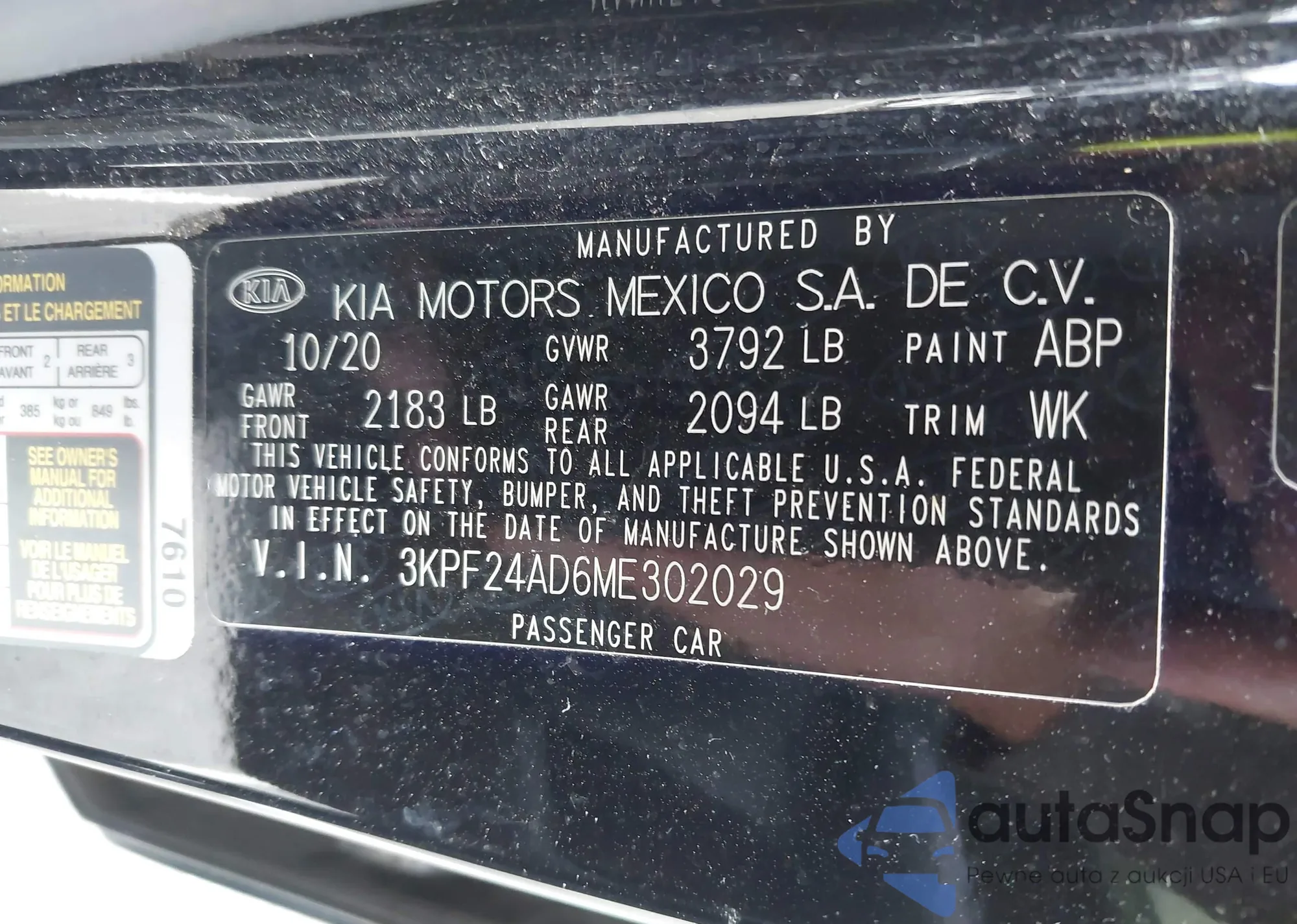 • VIN 3KPF24AD6ME302029